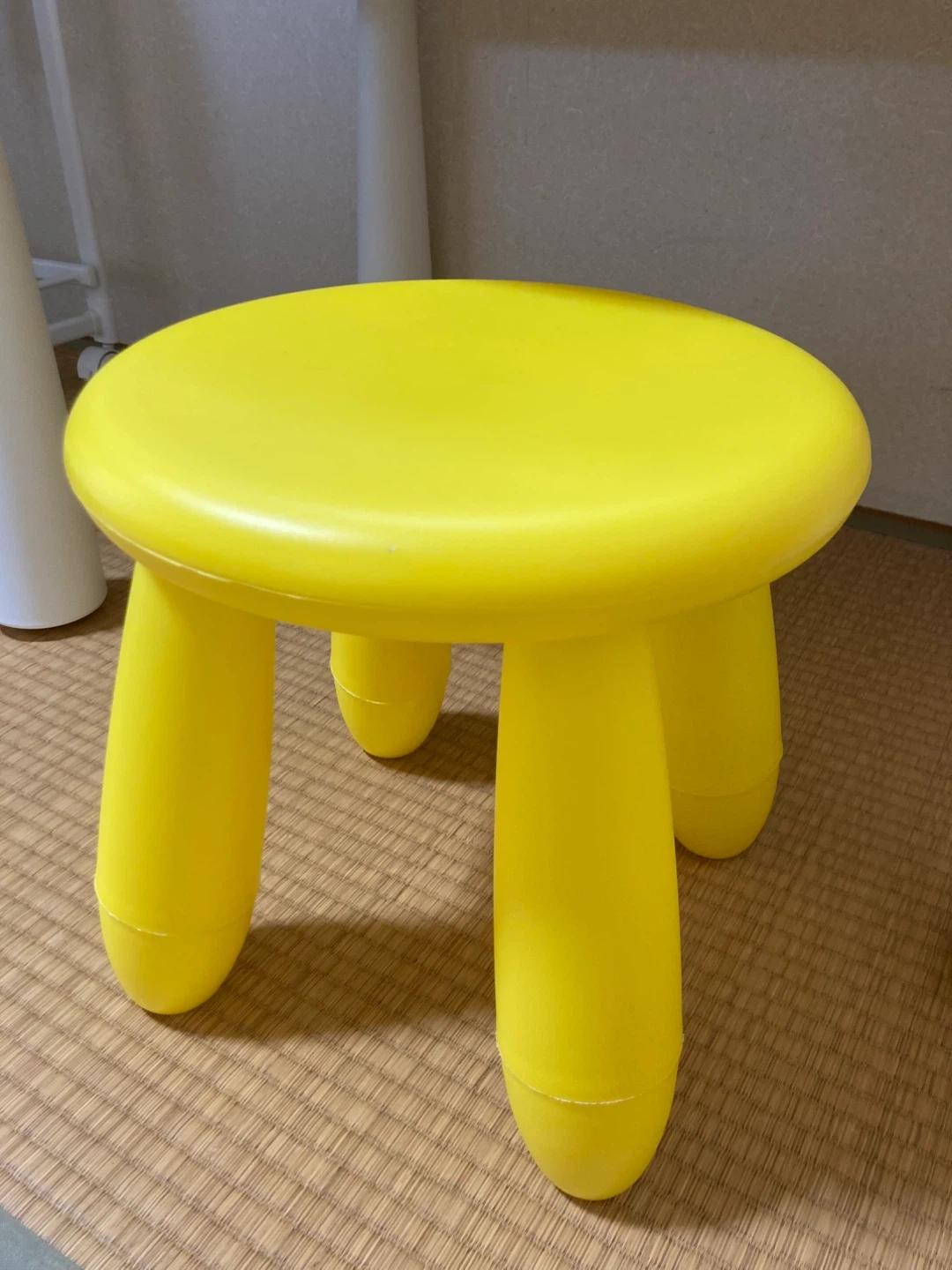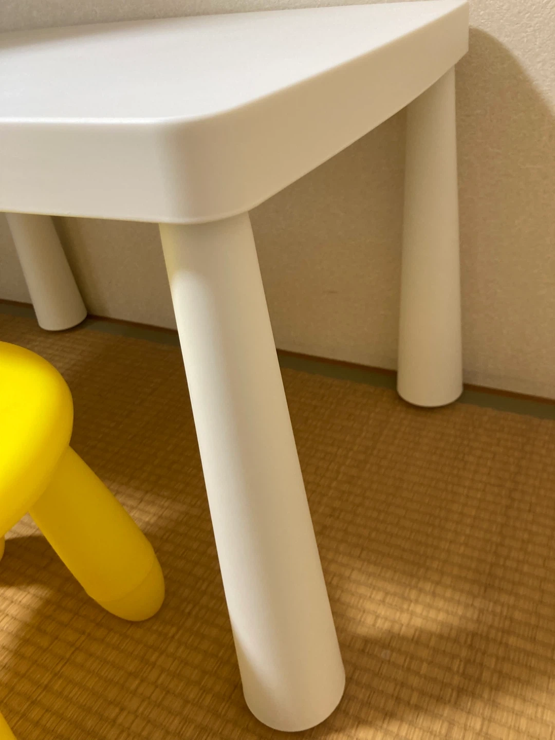 IKEAの子供用のテーブルと 椅子です。 素材:ポリプロピレンプラスチック ・色:白(テーブル)、 ・黄色(椅子)直径30cm、高さ30cm ・白いテーブルなので、薄い汚れはありますが、大きなキズ等無く、比較的キレイな方だと思います。 イスも少し汚れがあります。 重すぎず持ち運びしやすいです。 ご不明点があればお気軽にご連絡ください。