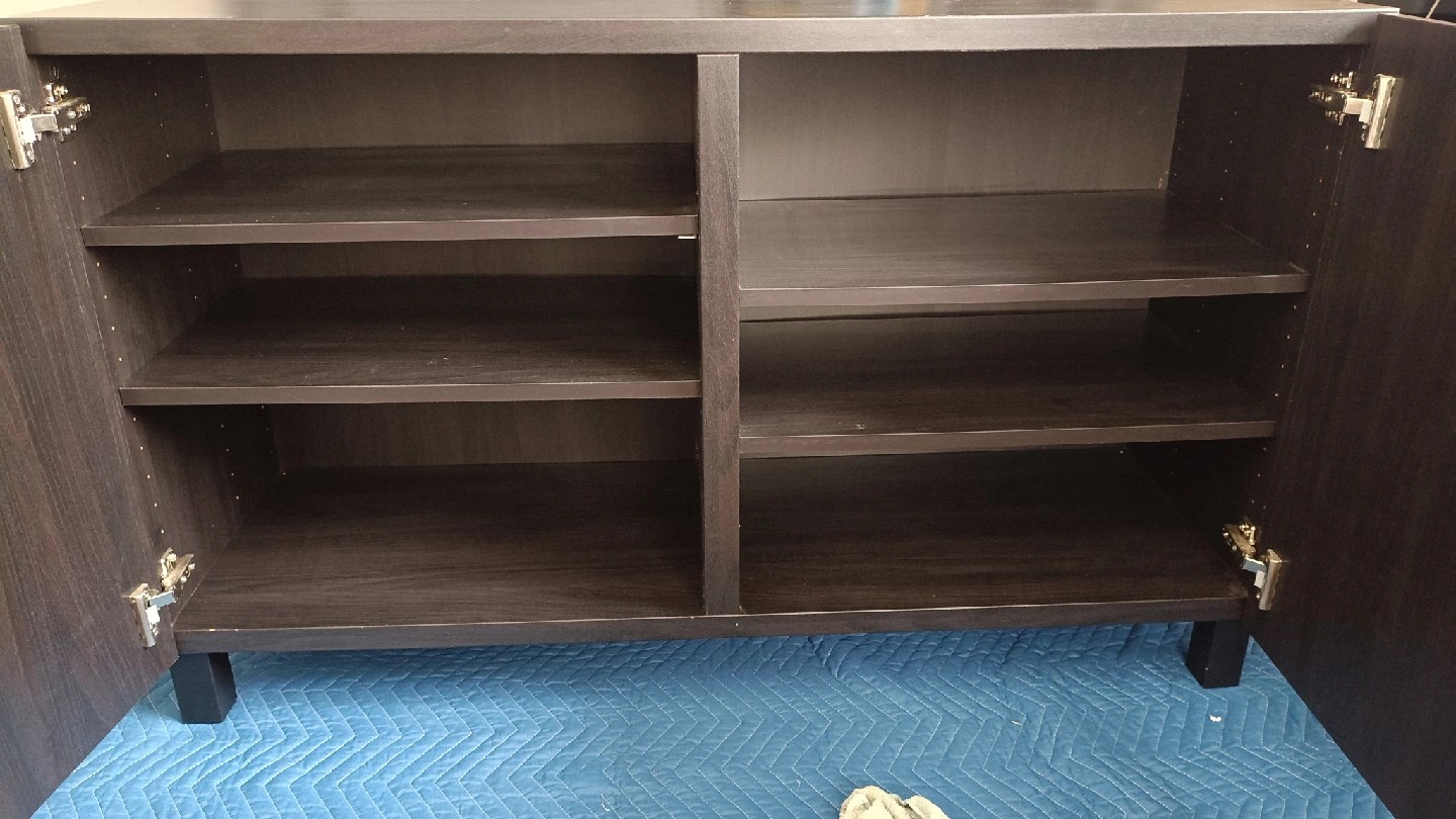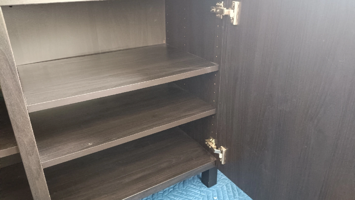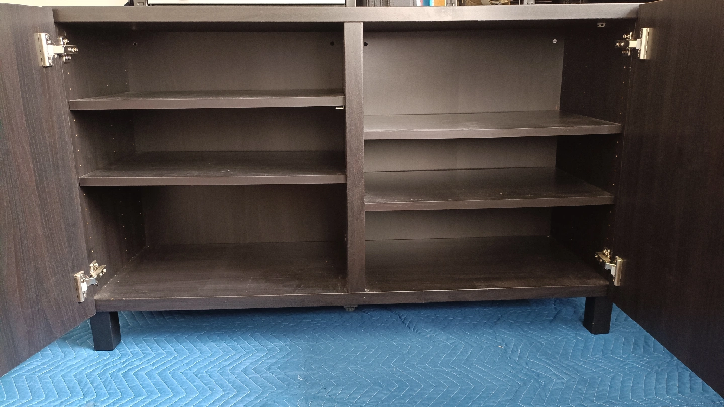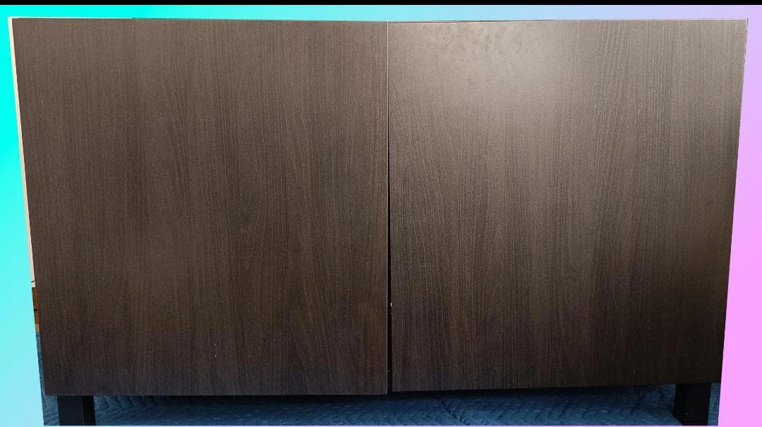 イケアのBESTA収納キャビネットです 【情報】 ブランド:イケア シリーズ:BESTA カラー:ダークブラウン サイズ:奥行き40cm 高さ64cm 幅120cm(推定) 【状態】 使用感少なめ 小さな傷あり 中古品であることご了承ください