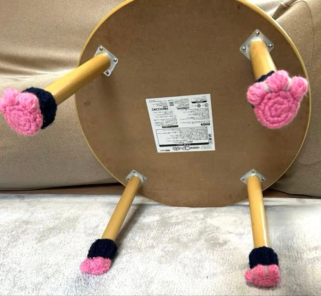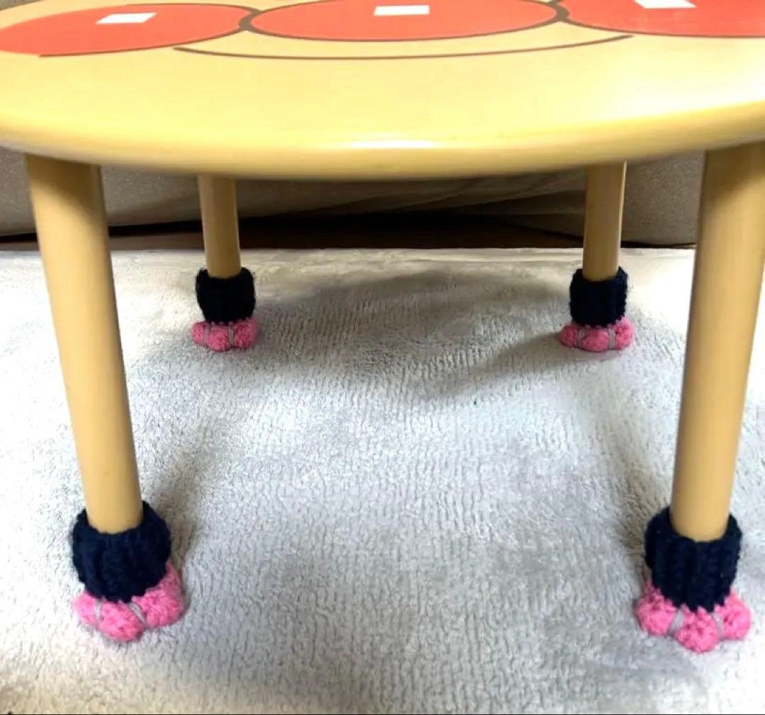ハンドメイドのイス・テーブル用脚カバー4個です。 孫が遊びに来た時用のテーブル脚カバーとして、ミニーちゃんをイメージして作製しました。我が家ではダイニングテーブルやチェアーにも同じ物を使用しています。 実用的に強度を出す為、脚の底は毛糸を二重にして編んであります。 脚繰りは多少の調整可能です。 アクリル毛糸使用 洗濯OK テーブルは含みません 自宅保管品および素人作品につきまして ご理解の程宜しくお願い致します