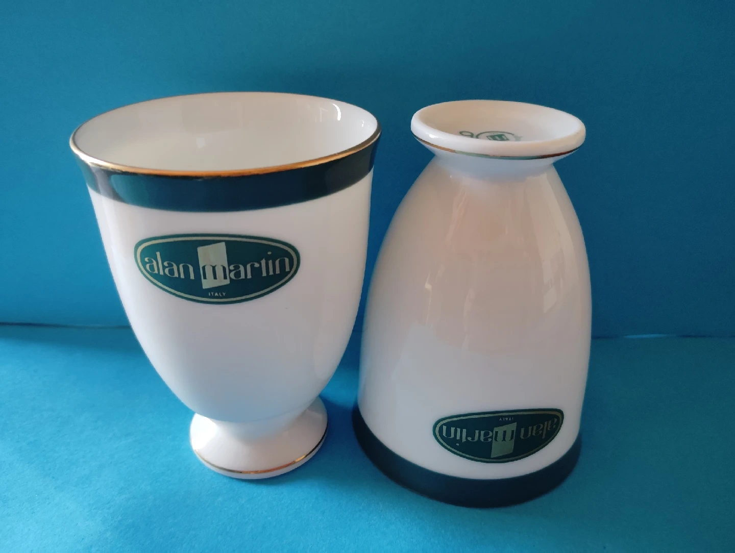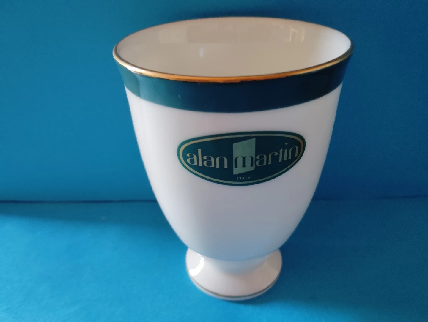 イタリア製 Granmartin     白の陶器の上下のゴールドのライン、 格調高めます。 ・ブランド:アランマーチン ・色: 白、緑、金 ・サイズ:(約)上部径7.2下部径4.3高10.3                センチ