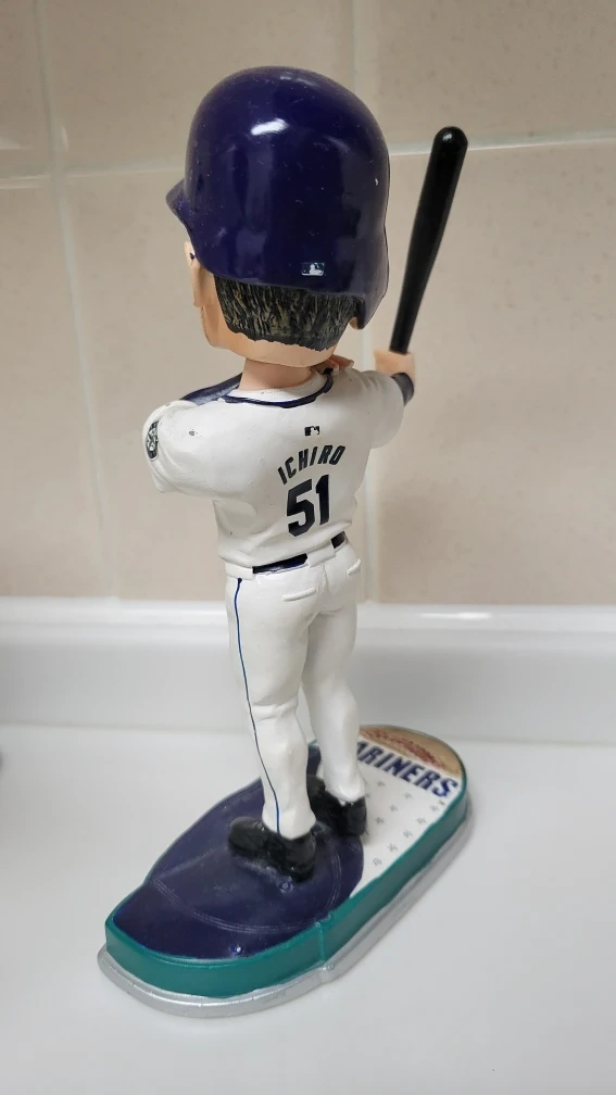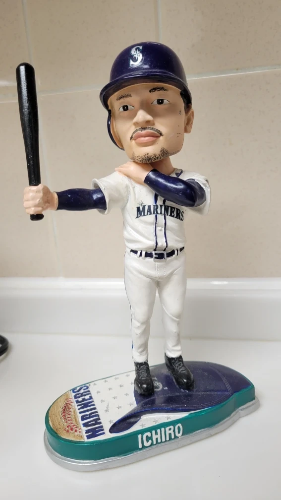 イチロー選手のボブルヘッドです。 ・シアトルマリナーズ ・ボブルヘッド ・背番号:51 バットが一度折れて接着剤でくっつけています。中古品であることをご了承ください。