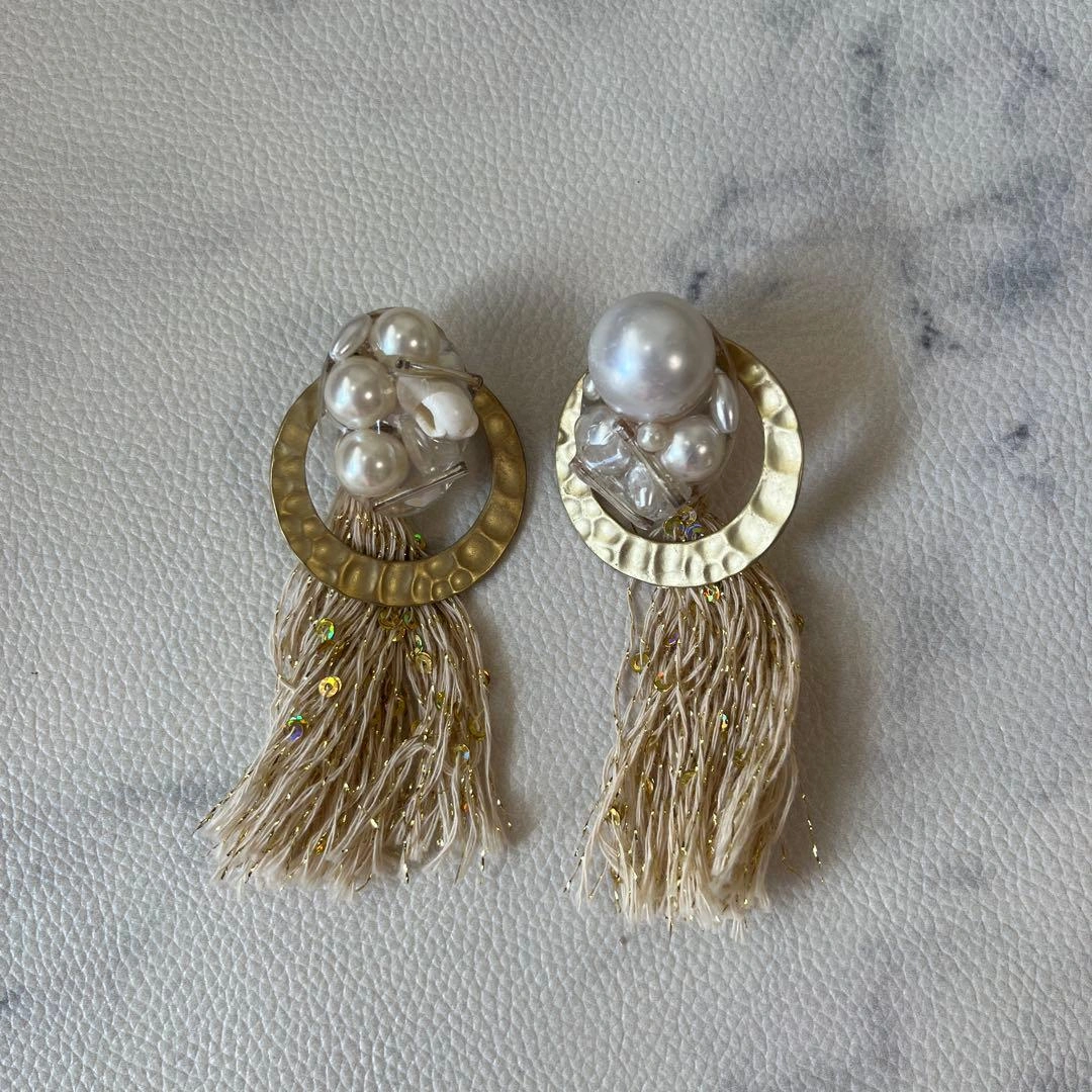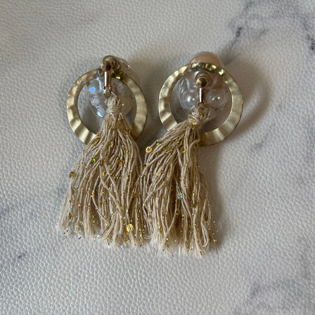 あたたかさハンドメイドショップでオーダーメイドで購入したイヤリングです。あまり使用せず保管していました。綺麗な状態ですが、神経質な方はご遠慮ください。 ¥5000ほどで購入したと思います。 大きさ 約10センチ ご希望の方はお気軽にご連絡ください。