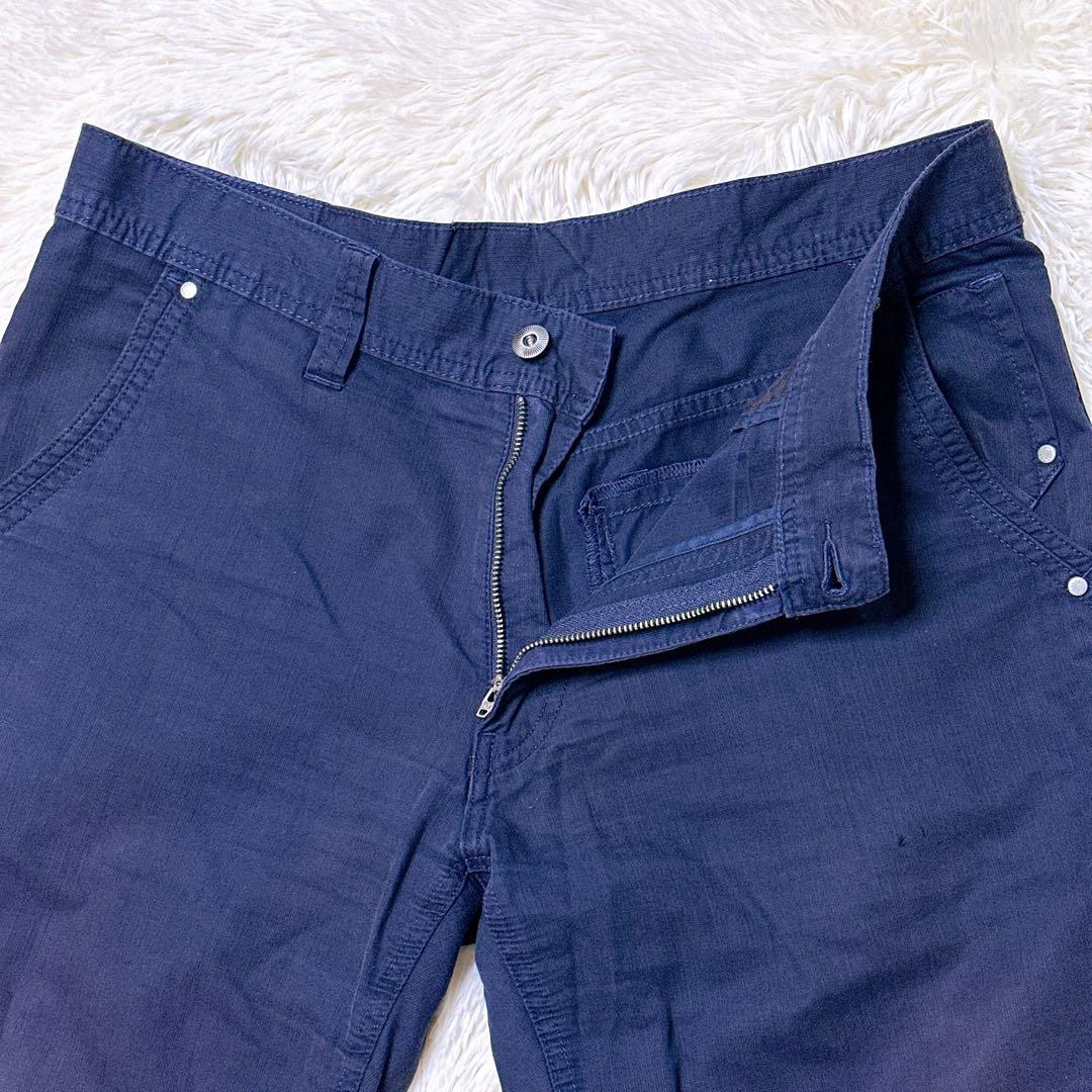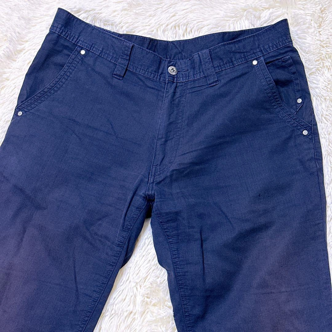 ご覧頂きありがとうございます。 ネイビーのスリムフィットカジュアルパンツです。前面に2つのポケットがあります。 写真にてご確認ください。 平置き寸法 ウェスト:44cm 股上:25cm ヒップ:52cm わたり幅:28cm 股下:77cm すそ幅:22cm 素人寸法のため、若干の誤差はご了承ください。 ウエスト···44cm ヒップ···52cm 股上···25cm 股下···77cm カラー···ネイビー系 柄・デザイン···無地 汚れ・破れ・臭いなど···なし ご不明点はお気軽にお問い合わせください。