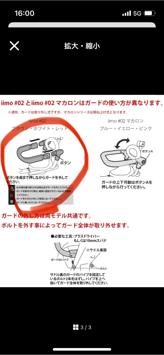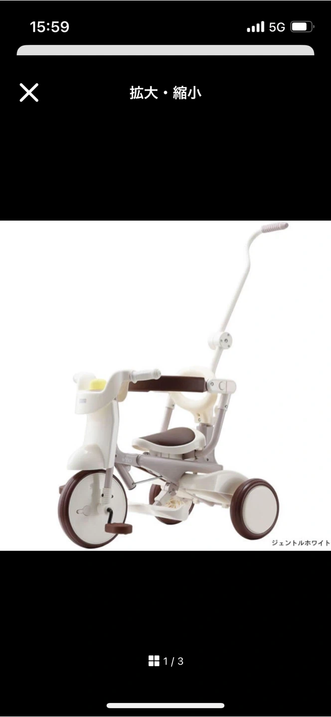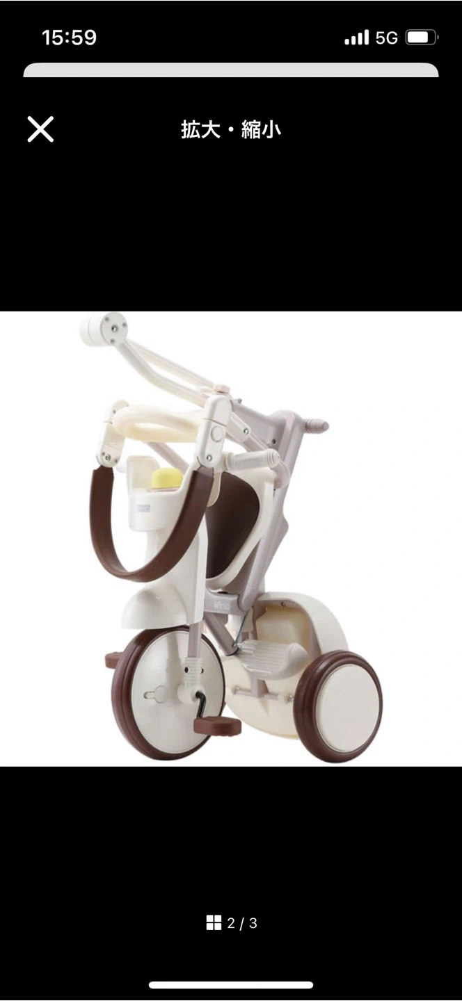 中古品であることをご了承ください。 iimo #02 三輪車 ジェントルホワイト 調整可能なハンドルを備えたiimo #02 マカロンのジェントルホワイト三輪車。 定価は14000円くらいのものだと 記憶します 保管は室内ですが 一定期間 外でベビーカーがわりに 使っていましたので 使用感はあります。 - 色: ジェントルホワイト - タイプ: 三輪車 - ハンドル: 調整可能 - モデル名: iimo #02 スタイリッシュなデザインとたたんで部屋に置いても省スペース! もっとスマートに使ってもらいたいから、安全・使いやすさをプラスしました。 【カジキリドライブ&折りたたみ押棒】 押棒でハンドル操作ができるので、運転できない小さなお子さまも安心して乗せてお出かけすることができます。 従来モデルより14cm高くなった押棒はコンパクトに折りたためます。 【カンタン折りたたみ】 ダイヤルを回してロックを外すと、おどろくほど簡単にサイズダウンが実現します。 【フリーペダル】 ボタンを押すとペダルがフリーになり足のペダルへの巻込みを防止します。 ボタン横のスイッチをスライドさせるとペダルがロックされます。 【着脱式ソフトガード】 お子さまを落車から守るソフトガード。 乗り降りしやすいように着脱式になりました。 【折りたたみステップ】 まだペダルをこげないお子さまがラクに足をおけます。 足が横から落ちないように、新たにサイドにヘリを設けました。 ・自立式コンパクト折りたたみスタイル ・フリーペダル ・着脱式ソフトガード ・折りたたみステップ ・折りたたみ押棒(着脱可能) ・カジキリドライブ機構 ・エアホーン ■対象年齢:1歳6ヶ月〜4歳11ヶ月(適用身長 77cm〜100cm) 対象年齢···8ヵ月から 対象年齢···1歳半から 機能···折りたたみ 特徴···完成品 サイズ 幅420×長さ780×高さ970mm 製造元推奨の最少年齢(月) 18.0 サイズ:幅420×長さ780×高さ970mm (折りたたみ時)サイズ:幅420×長さ480×高さ700mm パッケージ重量: 7.98 kg