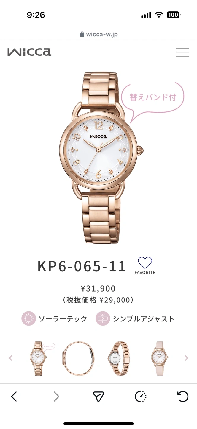 ウィッカの腕時計です。 シチズン そのままプレゼントもできます。 「メイクアップ」をテーマにした、やわらかなシルエットとパイプのようなラグ(ケース本体とバンドをつなぐ部分)が特徴的なモデル。メイクをしているときの高揚感やメイクアップアイテムからインスピレーションを得たデザインで、「腕時計を着けることで気分が上がり、1日のスタートが楽しくなりますように」という想いを込めています。文字板にはフェイスパウダーをイメージしたパターンを描き、3時と9時位置のクリスタルガラスでアイシャドウの光を表現しました。 温かみのあるチークのようなピンクベージュの替えバンドをセットした、その日のメイクやフ アッションに合わせて印象を変えられる2way 仕様です。バンドは、ユーザーご自身で手軽に付け外しができるインターチェンジャブル構造を採用しています。