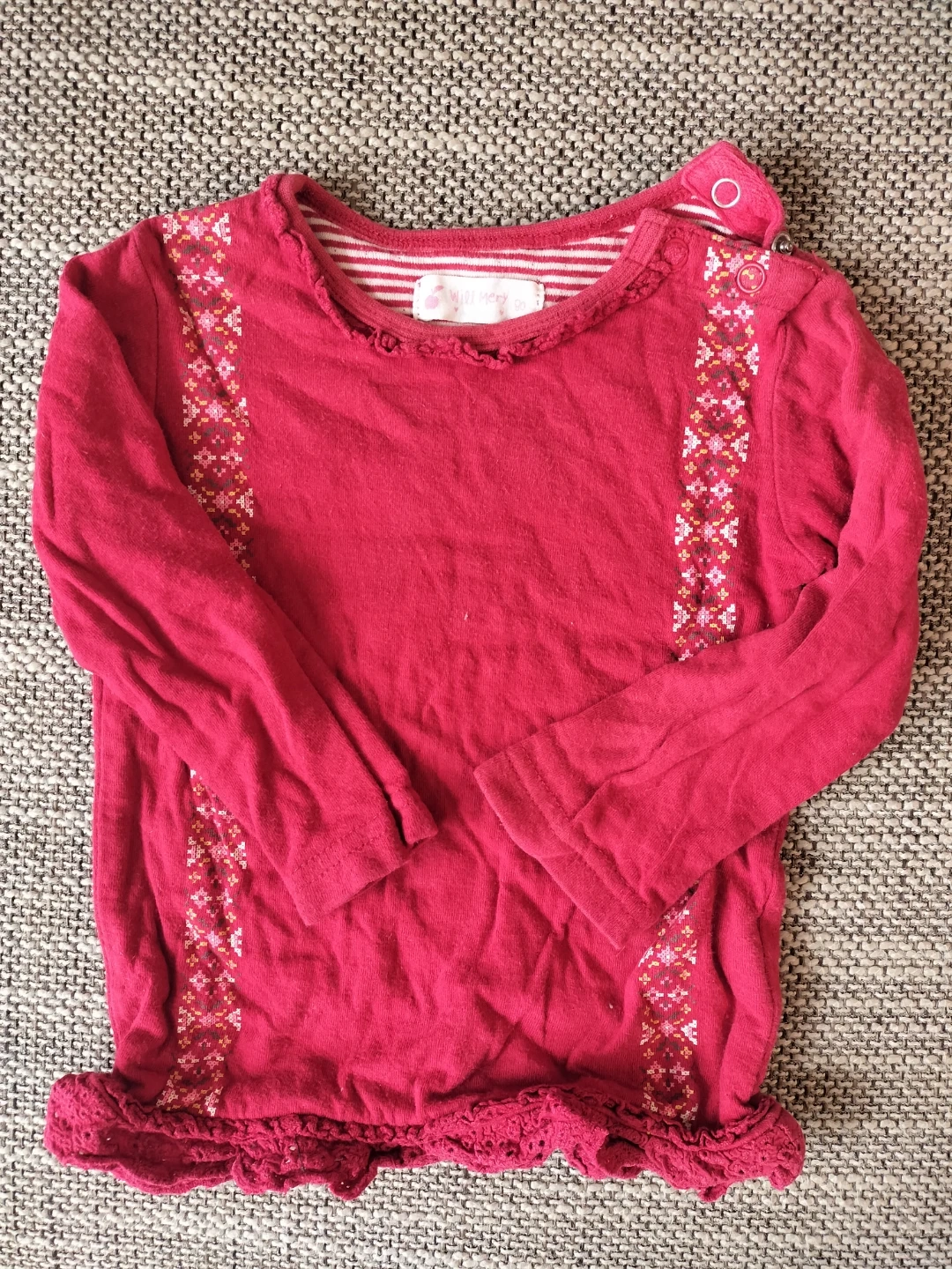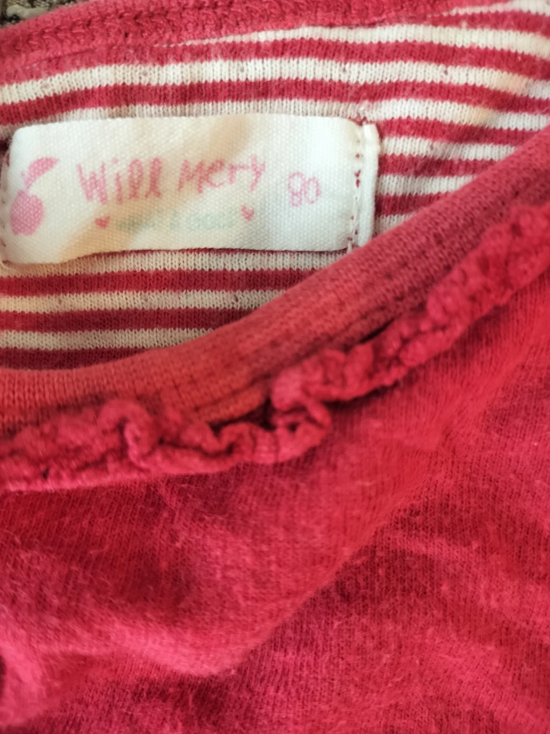 ウィルメリーの長袖カットソーです。 ・ブランド:ウィルメリー ・サイズ:80 ・色:赤 ・使用感あり 子供が使用した中古品であることご了承ください。 記名は、塗りつぶしてお渡しします。
