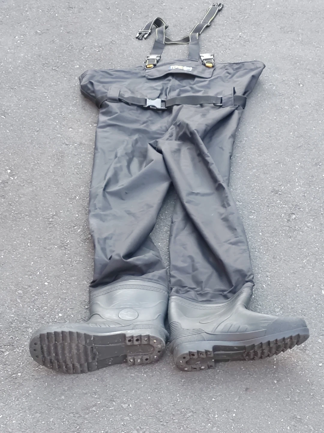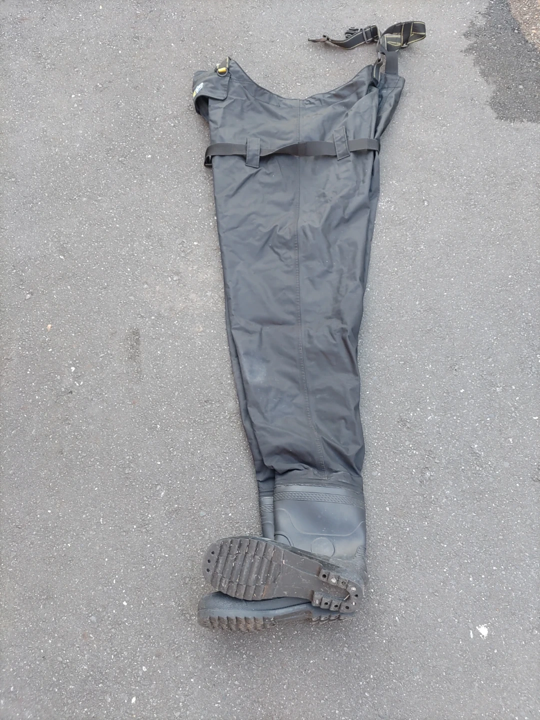 釣り用ウェーダーです。 渓流釣りで、ワンシーズン使用しようしました。 ソールはラジアルです。 裂け目もあります。 ・サイズ:5L(29.0~30.0cm) ・素材:PVC/ナイロン ・色:ブラック ・状態:使用感あり 中古品であることをご了承ください。