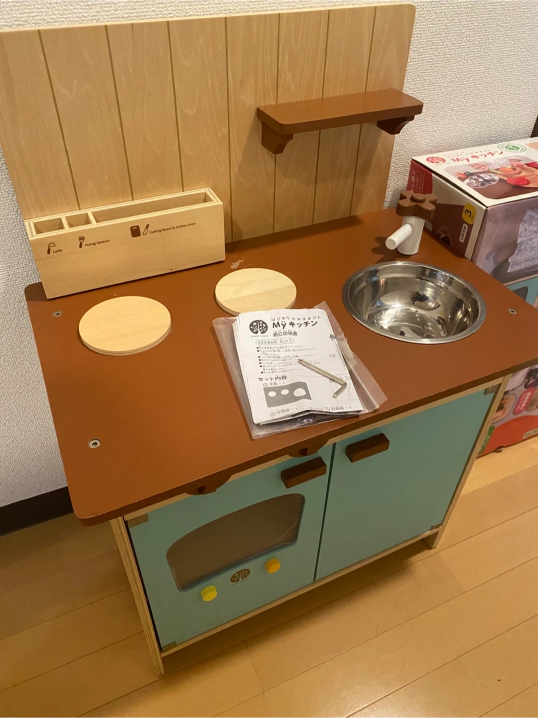 WoodyPuddy はじめてのおままごとMYキッチン 生産終了品となります。 (おまけ付き) 1枚目のお写真の全てを纏めてお譲りさせて頂きます。 【情報】 ブランド:ウッディプッディ 商品:マイキッチン 【状態】 全体的に綺麗ですが、 写真2枚目の所にだけ傷がございます。 窓のビニールはまだ剥がしておらず綺麗です。 (写真3枚目参照) 【付属品】 1枚目の写真に写っているものが全てです。 説明書、箱あり 【 定価】 ¥24,75(税込) 中古品であることご了承ください