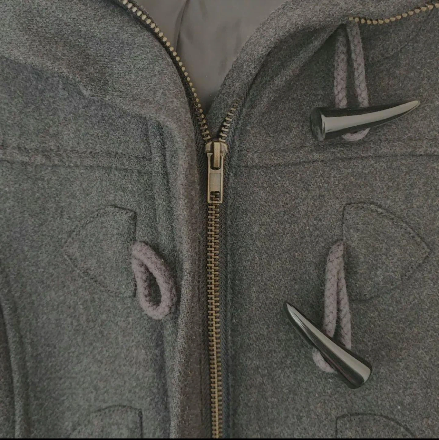 エイチアンドエムのダッフルコートです ・ブランド:H&M(エイチアンドエム) ・サイズ:40(EUR) ・色:グレー ・素材:ウール、ポリエステルなど ・状態:使用感あり 中古品であることご了承ください 着回ししやすいです。引っ越しに伴い出品することにしました。使用感が気になる方は写真でご確認ください。使用回数少ないです。 綺麗なほうだと思います。シミなど見当たりませんでした。まだまだ問題なくご活用いただけると思います。 サイズ表記 レディース40 Lサイズ前後かと思います 総丈79cmくらいに ポカポカ厚手しっかり生地