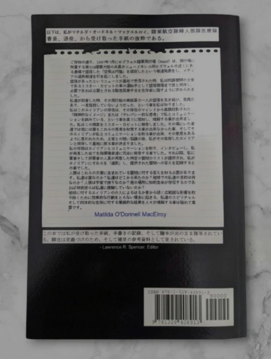 新品になります。 オカルト界隈で大騒ぎされてる本の日本語版です。 マチルダ・オードネル・マックエルロイが提供した文書に基づいて 宇宙人エアル(ドメイン軍)の語った内容をもとに現人類のすべて! この本一冊に