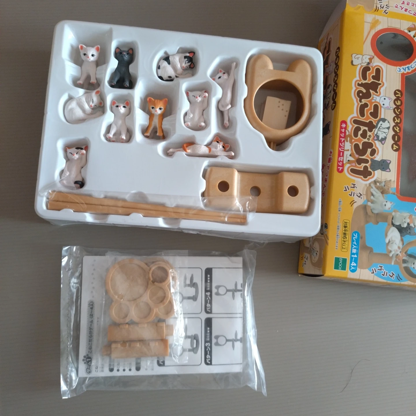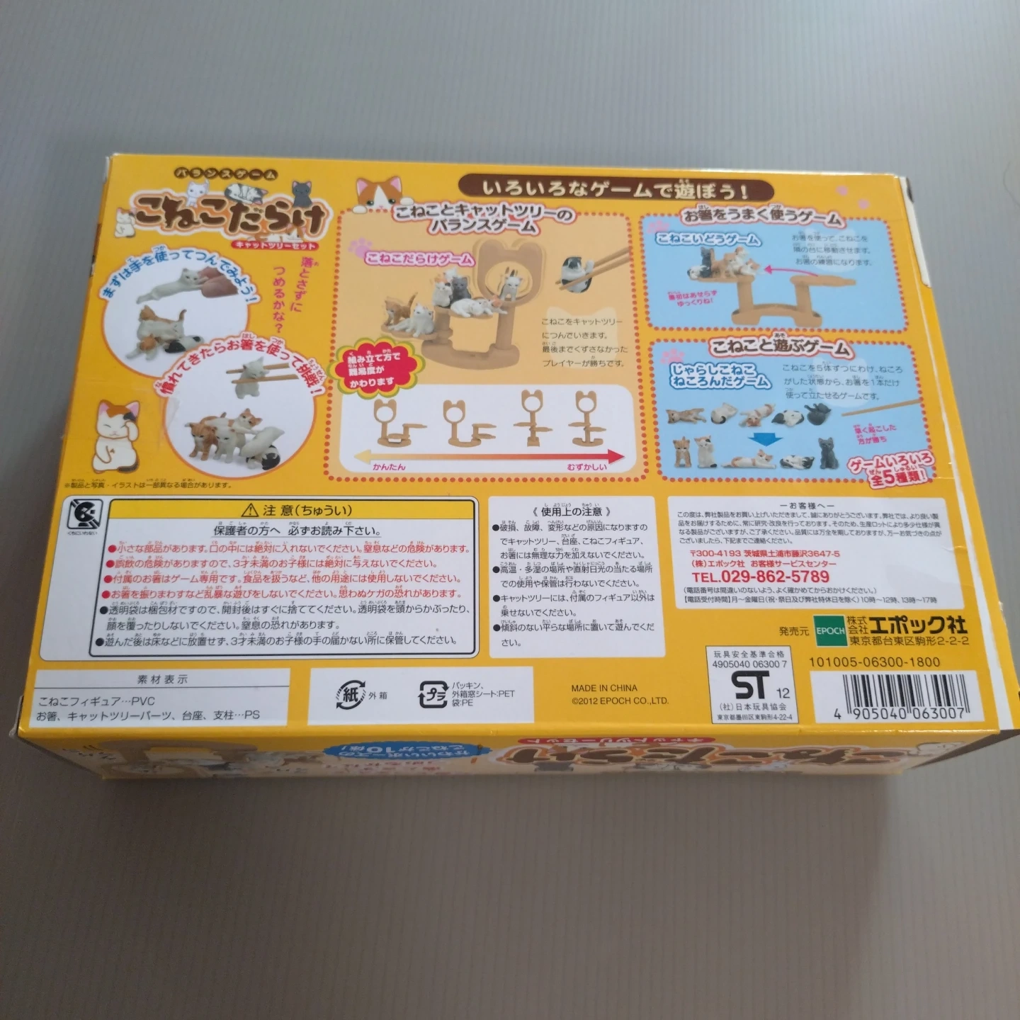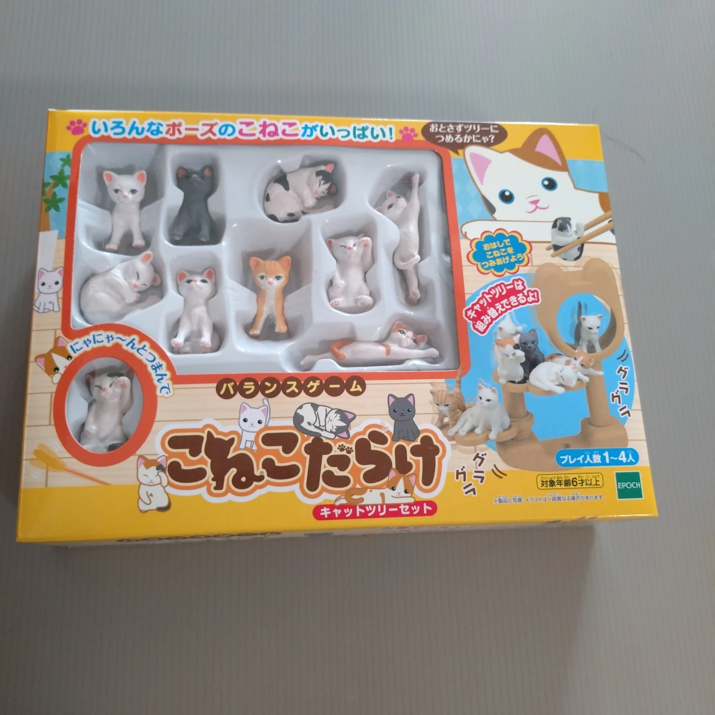 こねこのフィギュア10体入りバランスゲームセットです ・おはしでこねこをつまんで遊びます - セット内容: こねこフィギュア…(PVC) お箸,キャットツリーパーツ,台座,支柱…(PS) - ゲームの種類: バランスゲーム - 対象年齢: 6歳以上 - メーカー: エポック社 -プレイ人数:1~4人 -取扱説明書あり 一度、開封組み立てまでしましたが、未使用新古品同等です 一部紙製の猫箱は組み立てありますが、問題はありません 元箱も 傷み等は少ないと思います 画像でご確認ください 自宅保管の為ご理解頂ける方でお願いいたします ご不明点があればお気軽にお尋ねください。