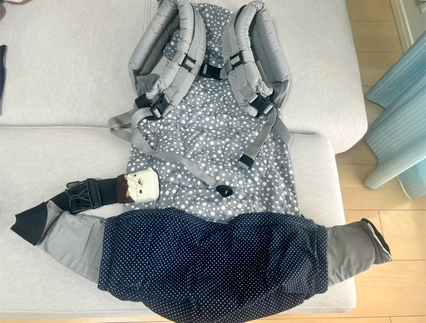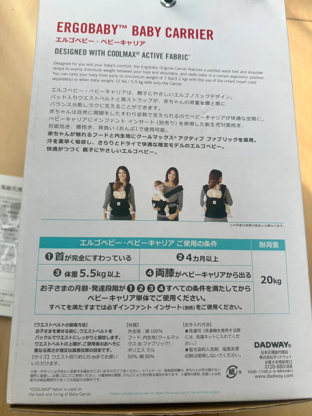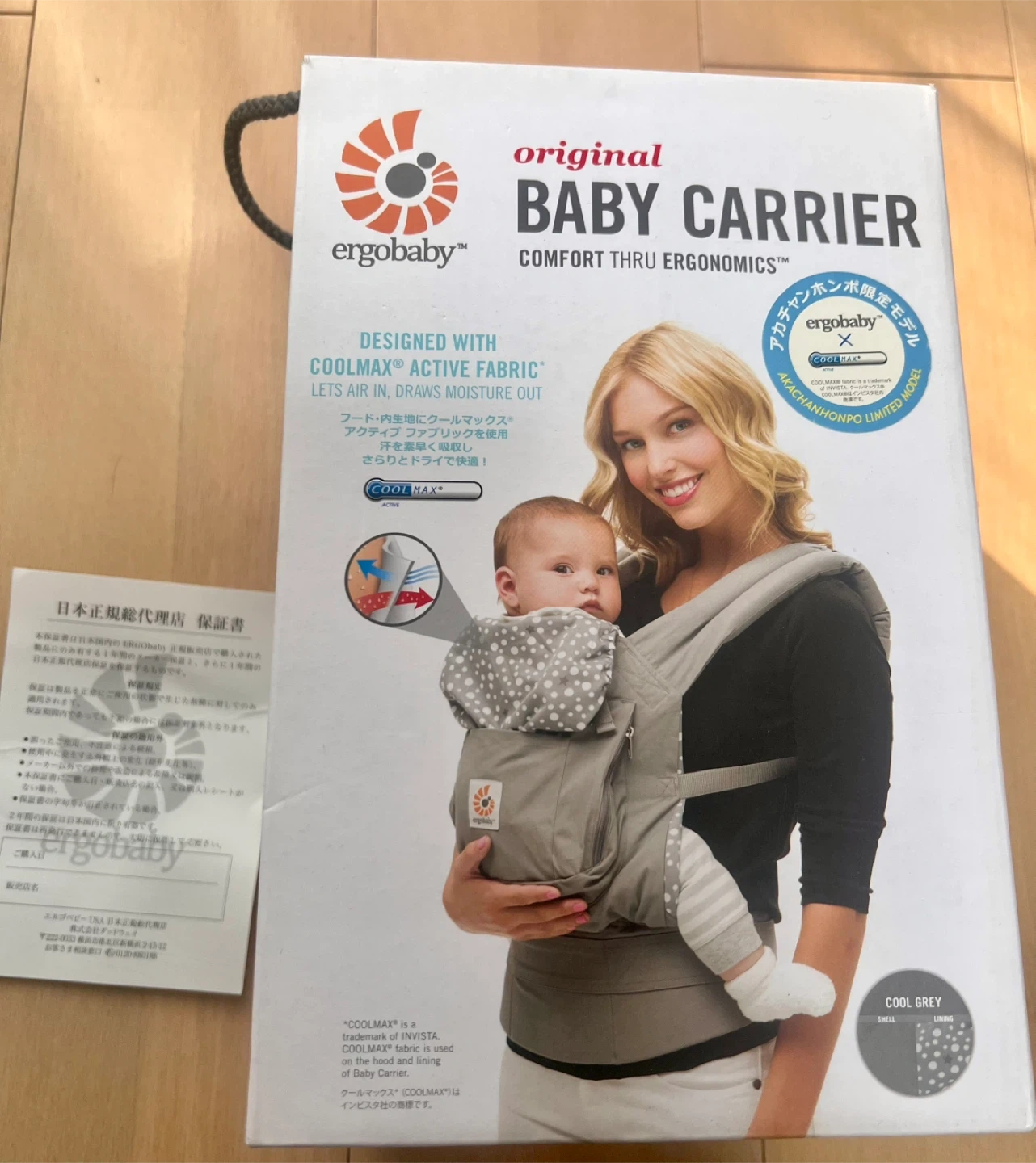クールマックス素材のグレー・ドット柄抱っこひもです。 アカチャンホンポ限定モデル。 グレーにドット柄なので私服にも合わせやすいです。 バックルの痛みなどはありません。 丸めて保管できるカバー付き。 他の抱っこ紐と併用して使っていたので大きなダメージはなく、洗濯して保管していました。 一度は人の手に渡ったものですので、神経質な方はご遠慮下さい。 たたんで箱に直しておりますので、たたみジワございます。ご了承下さい。 - ブランド: ergobaby - モデル名: 3 Position Baby Carrier - 対象年齢: Baby to Toddler (12-45lbs / 5.5-20kg) - 色: グレー・ドット柄 - 特徴: クールマックス素材使用 生後4ヶ月〜 平日は12-13時/18時〜、週末は日によって受け渡し可能時間が異なるので都度ご相談させてください。