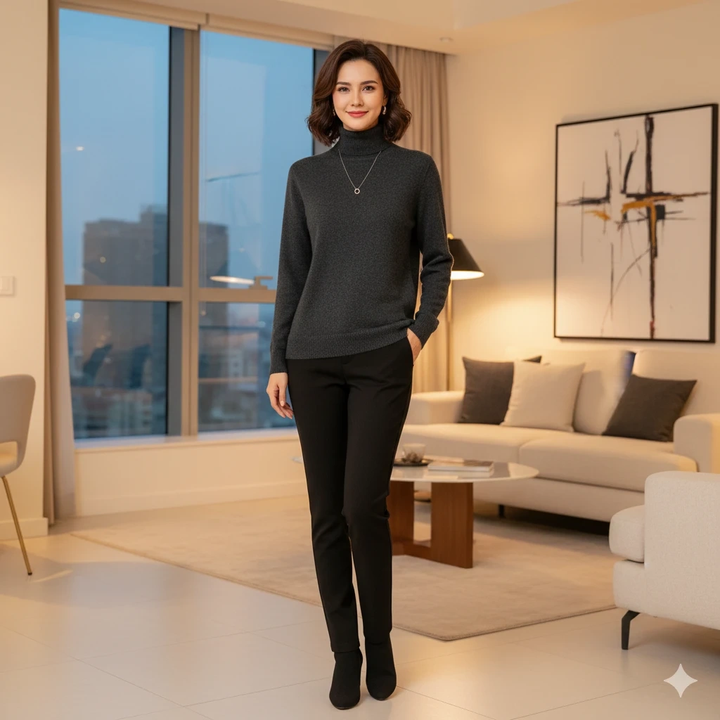 エンポリオアルマーニ 100%カシミヤ タートルネックセーター 38 黒 ニット