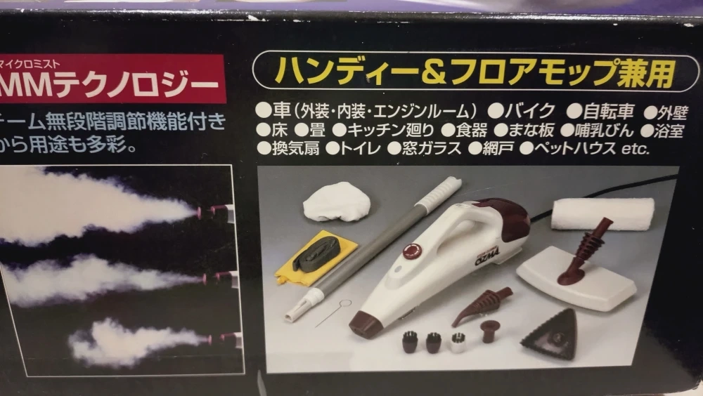 オズマのスチームクリーナーです。 スチームクリーナー「オズマ (OZMA)」SC-003Pです。 主な特徴は以下の通りです。 ハンディー&フロアモップ兼用タイプです. 蒸気の量が自由自在に調整できます. 車の油汚れからまな板の除菌まで、様々な場所に使用できる万能タイプです. 消費電力は1500Wで、短時間で高温スチームを生成します. 約100℃の高温スチームで汚れを浮かせて落とし、除菌効果も期待できます.情報】 ブランド:オズマ 商品名:スチームクリーナー 【付属品】 付属品は写真に写っているものが全てです。 未使用未開封