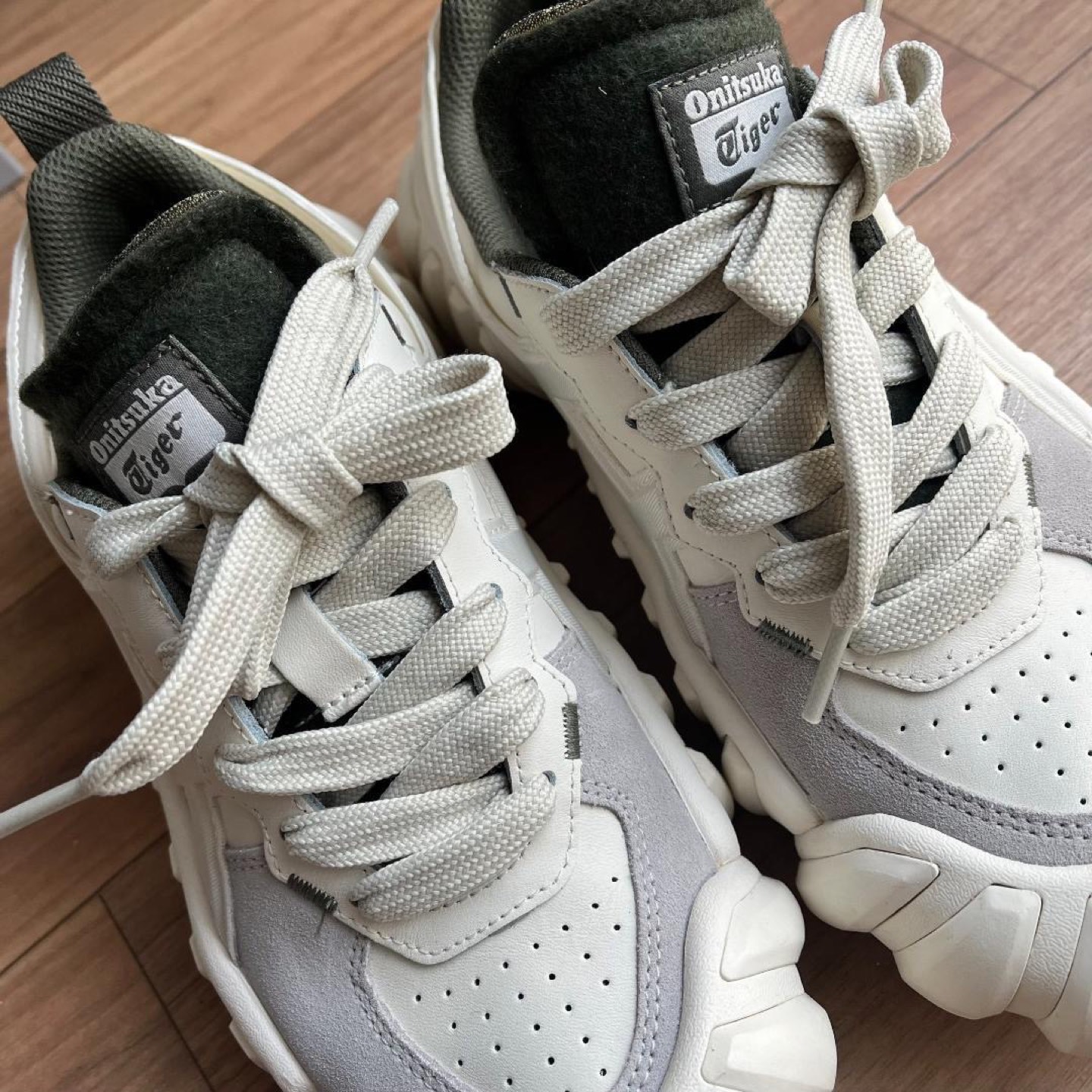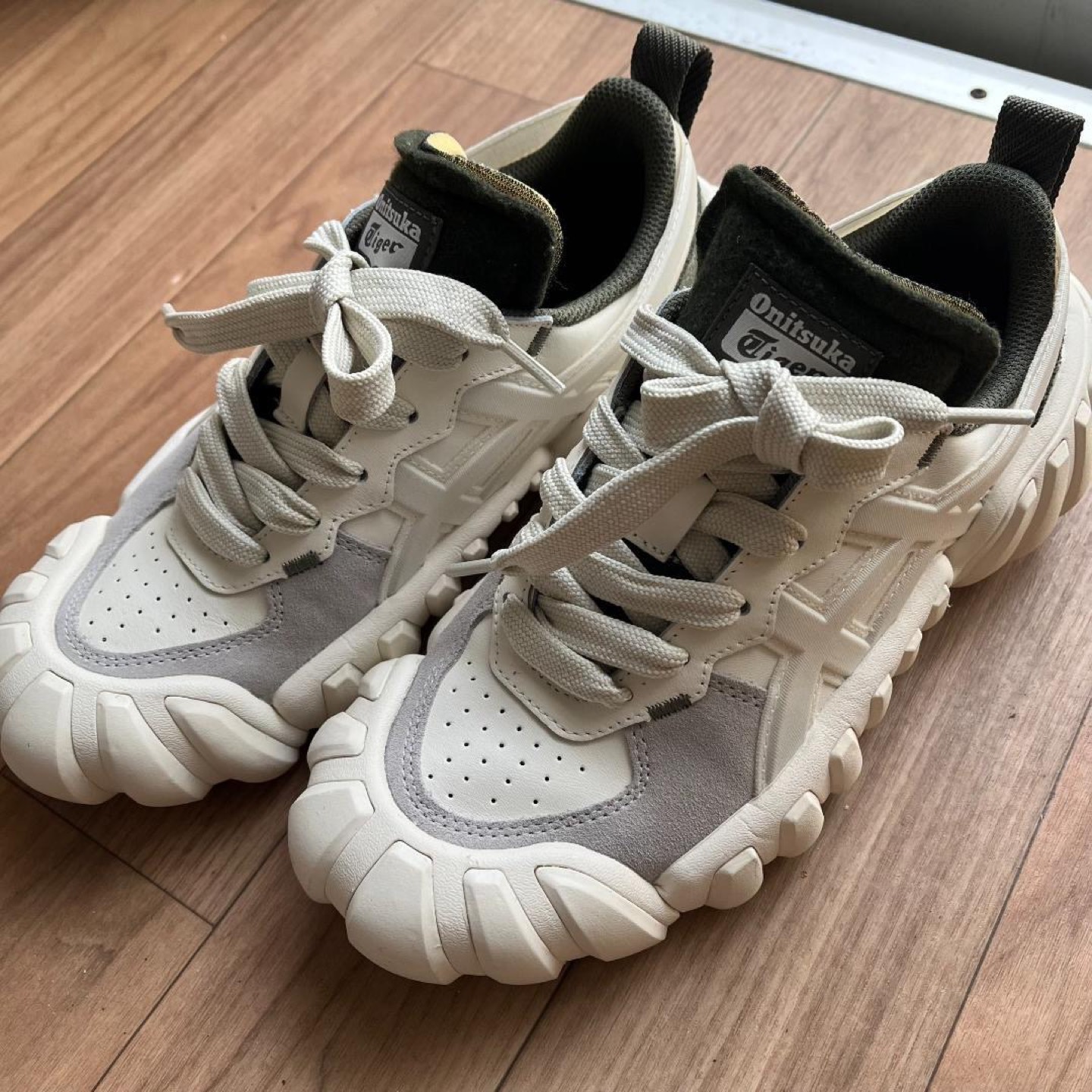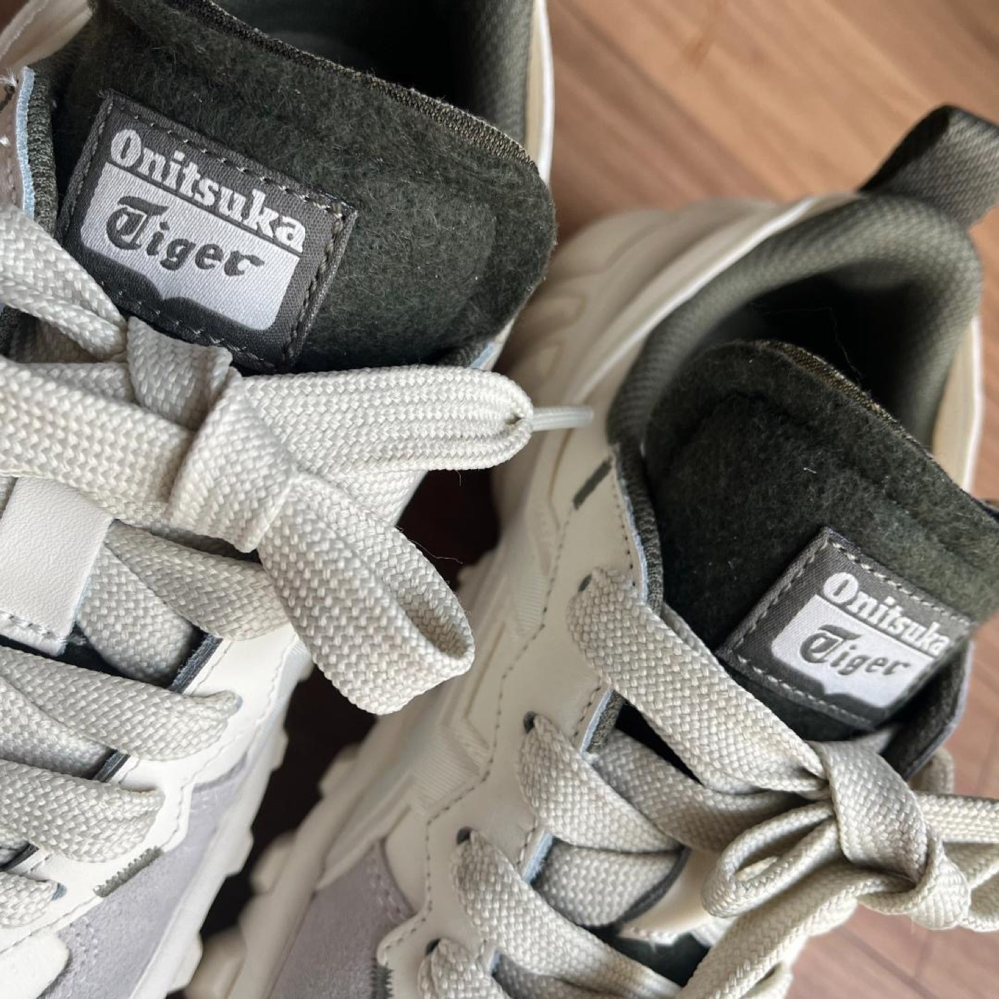 2023/3/9に新宿伊勢丹で購入。 1度だけ着用。 少し歩きましたがサイズが合わないので出品します。 すごくかわいいです。 お作り小さめだと思います。 1度着用してるので裏の汚れあります。 箱なしです。 USED品にご理解頂ける方ご購入お願い致します。 カラー:CREAM/BIRCH サイズ:24.5cm 異なるレザー素材で構成されたクラシカルなコートタイプシューズのアッパーとラギットなソールをハイブリッドしたローカットモデル。 立体的なオニツカタイガーストライプのデザインやフェルト素材を採用したシュータンと、ボリュームのあるソールが特徴。 -異素材で構成されたアッパー -クッション性と反発性に優れたFLYTEFOAM Propelミッドソール -かかと部に衝撃緩衝性を備えたfuzeGELを搭載 -反発性に優れ、快適な履き心地を実現するOrthoLite X40中敷を採用 アッパー : 天然皮革