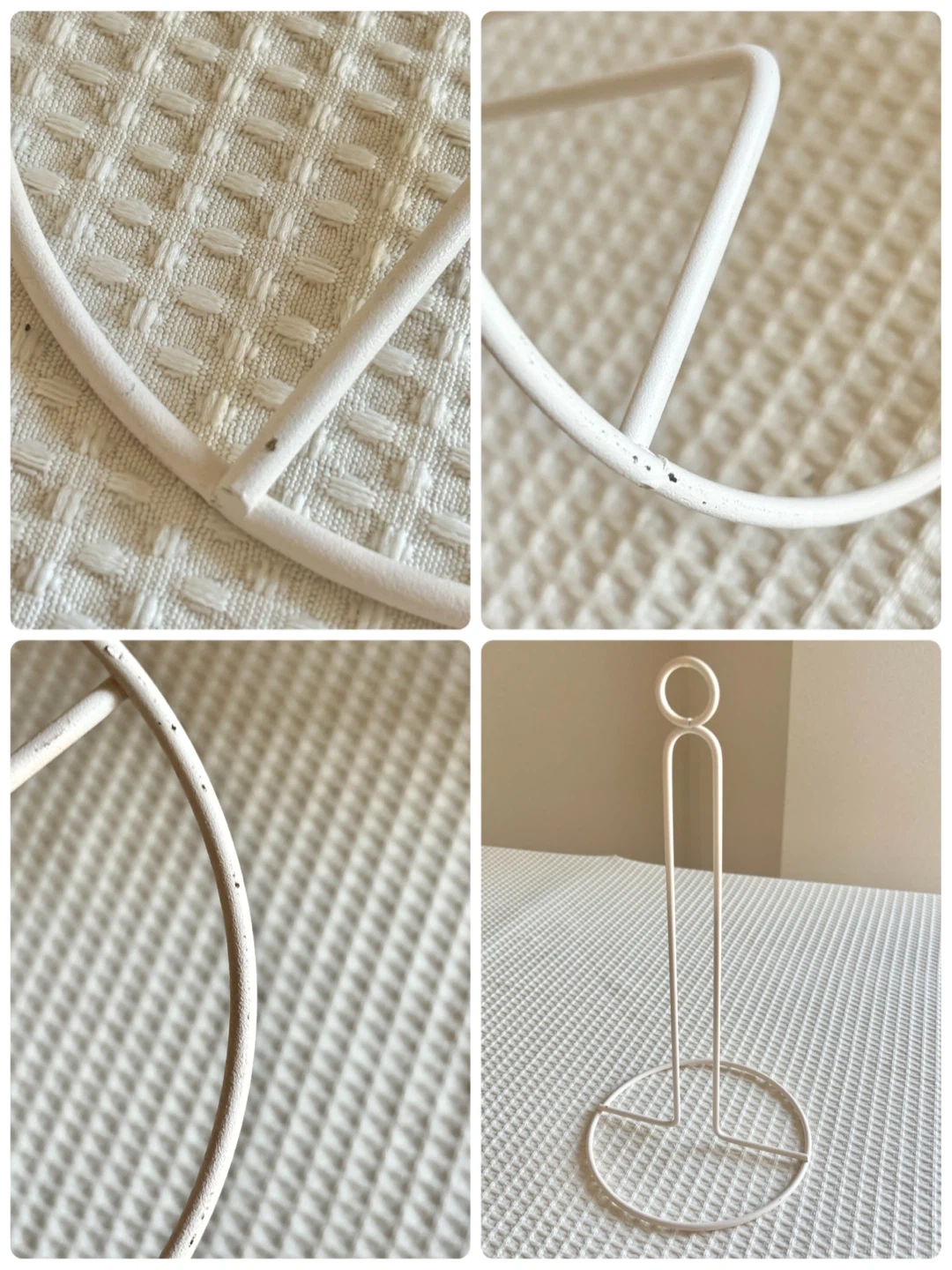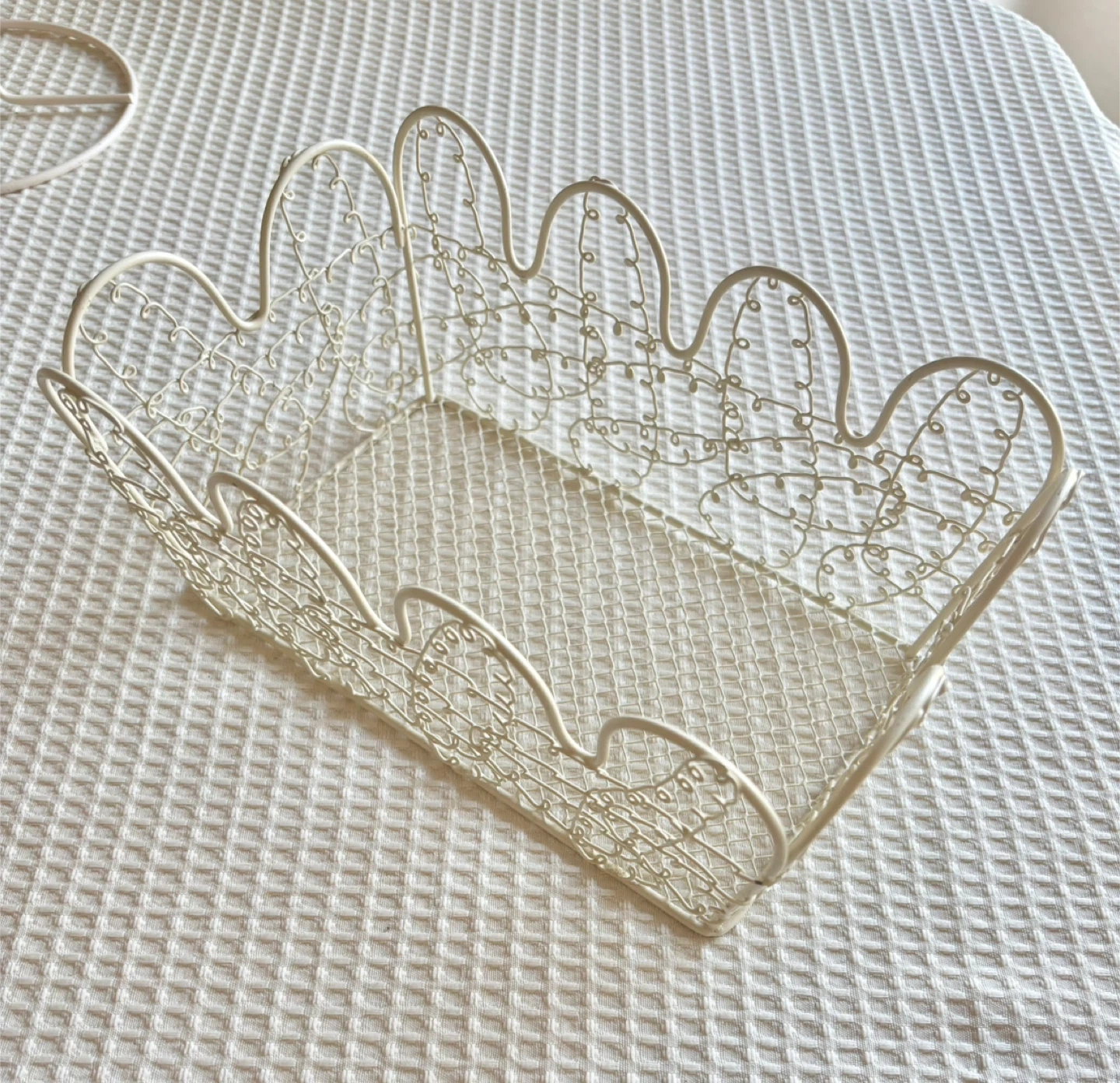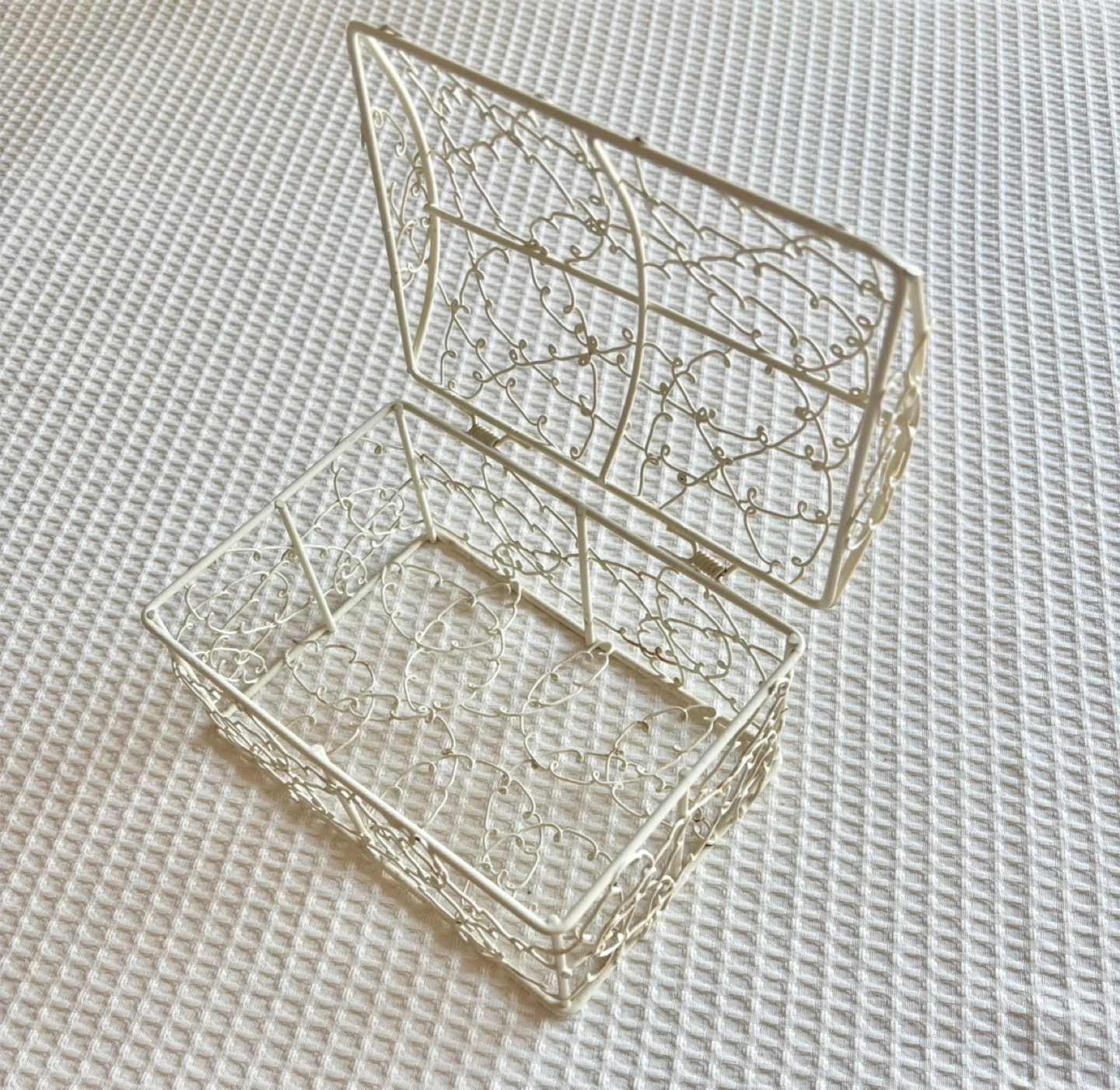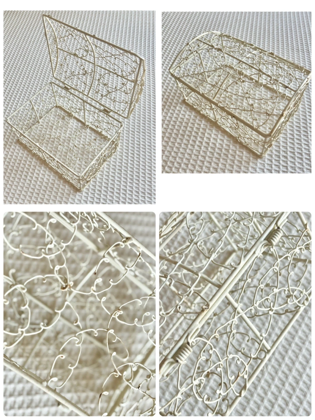 オフホワイトの金属製ワイヤーバスケット、蓋付きバスケットと、フック、ペーパースタンドの4点セットになります。 アンティーク風なインテリア、フレンチカントリー風なディスプレイ、ガーデニングなどにいかがでしょうか? いずれも自宅保管品、中古品になります。ご理解ある方にお譲りいたします。 少々、キズ、ハゲ、サビが見られます。 ⚫︎蓋付きバスケット 高さ 約9センチぐらい 16.5×11.5センチぐらい ⚫︎バスケット 高さ 約10センチぐらい 24×14.5センチぐらい ⚫︎フック 横幅 20.5センチぐらい ⚫︎ペーパースタンド 高さ 約28センチぐらい 底直径 約14センチぐらい ※いずれも一番大きな部分です。素人採寸 ご覧いただきありがとうございます。 #アンティーク #フレンチカントリー #カントリー #シャビー #インテリア #ワイヤー雑貨 #ガーデニング #白 #オフホワイト #雑貨