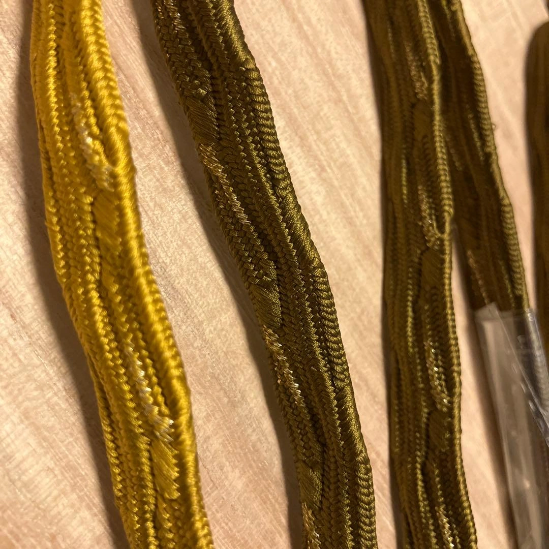 オリーブグリーンとゴールドの編み込みデザインの帯締めです。絹製で耐久性があります。 - 色: オリーブグリーンとゴールド(緑かかったゴールド)の組み合わせ - デザイン: 編み込みデザイン - 素材: 絹 ご覧いただきありがとうございます。 ご希望の方はお気軽にご連絡ください。