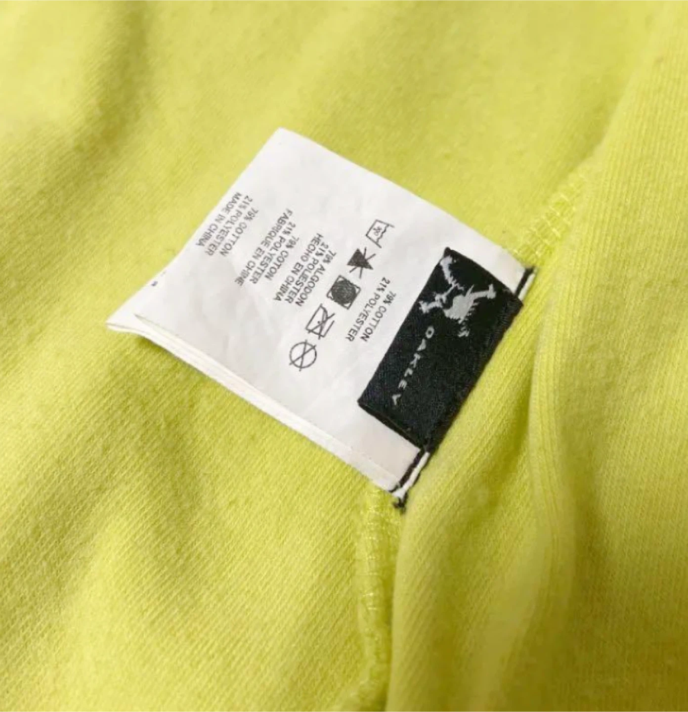 オークリーのパーカーです。 ・ブランド:オークリー ・サイズ:XS ・カラー:イエロー ・素材:79% コットン, 21% ポリエステル ・使用感あり 断捨離の為出品します。 オークリーパーカー サイズXS 丈50cm 横幅40cm 袖丈58cm 発色もよく状態は良いです。 あくまで自宅保管のため、神経質な方はご遠慮ください。 中古品であることをご了承ください。