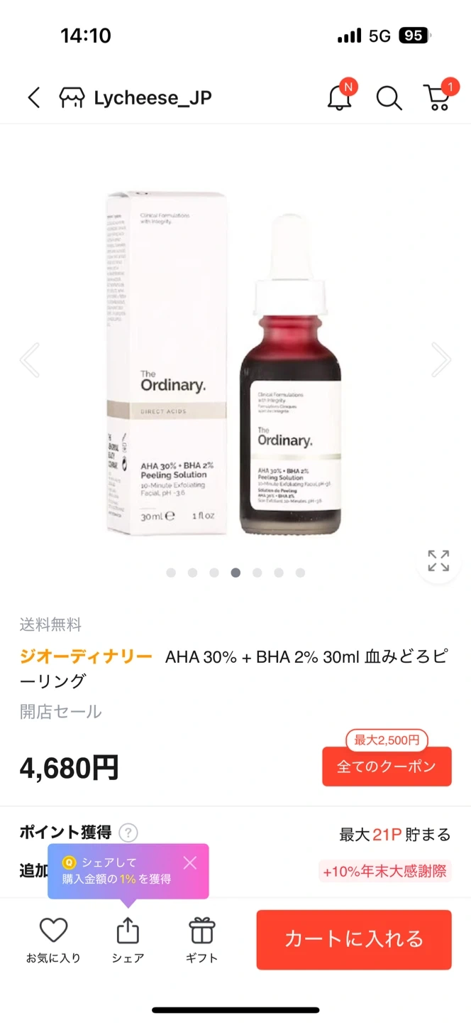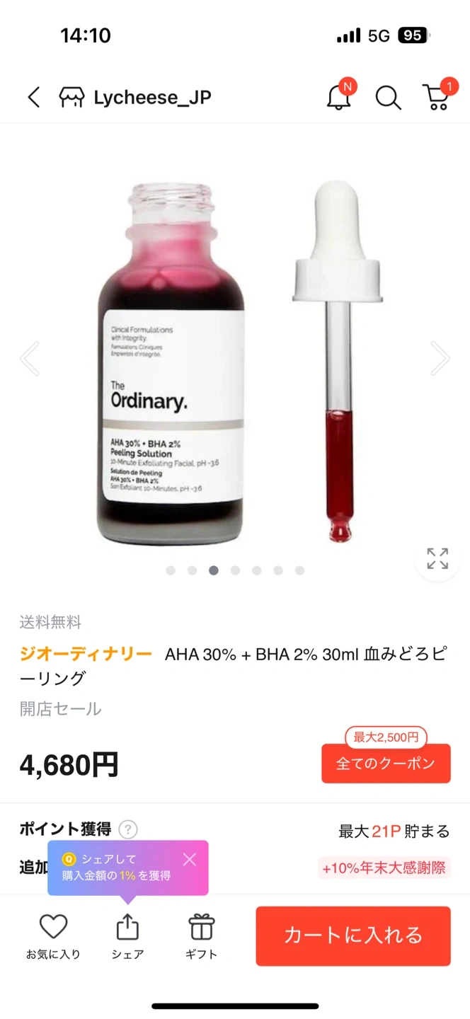 ジオーディナリーのピーリングセラムです。 ・ブランド:ジオーディナリー ・AHA 30% + BHA 2% Peeling Solution ・30ml 届いて直ぐです。開けてピーリングするにはゆらぎ肌 インナードライ肌過ぎて使わないと決めました。 2025/12/3着 どなたか宜しくお願いします🙇 普通の肌や毛穴ケアしたい方など成分も全て問題無く使えます。 未開封です。箱だけ開けました、申し訳ありません。 自宅まで来てくれると助かります。
