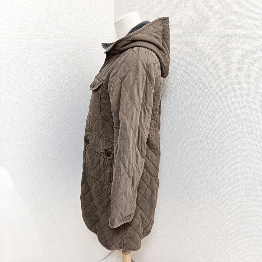 □商品名□ 美品 キルティングジャケット アウター ポケット付き ダークブラウン 綿 2 レディース 素材: 肌触りの良いコットン素材を使用。中綿には保温性の高いキルティングが施され、寒い冬も暖かく過ごせます。 デザイン: ゆったりとしたシルエットと大きめのポケットが特徴。フード付きで首元まで暖かく、カジュアルなスタイルにぴったりです。 カラー: ダークブラウンの色合いが落ち着いていて、どんなコーディネートにも合わせやすいです。 #joymaxお得なプロフへ #ゆうの古着屋さん_レディースアウター □ブランド□ OMNIGOD オムニゴッド □表記サイズ□ 2 Mサイズです □実寸サイズ(cm) □ 【床置きサイズ】 着丈:83 肩幅:36 身幅︰45 袖丈:58 ※実寸につきまして多少の誤差はご了承ください。 ※表記サイズだけではなく実寸のサイズをご確認ください。 □カラー□ ダークブラウン 焦げ茶色 □コンディション□ 一部色褪せがあります。 目立った汚れやダメージなど特にございません。 ※汚れはできる限り写真にて掲載しております。まずは画像をご確認ください。 出品一覧→ #joymaxお得なプロフへ どうぞよろしくお願い致します。 □商品管理番号□ M5-D-4136