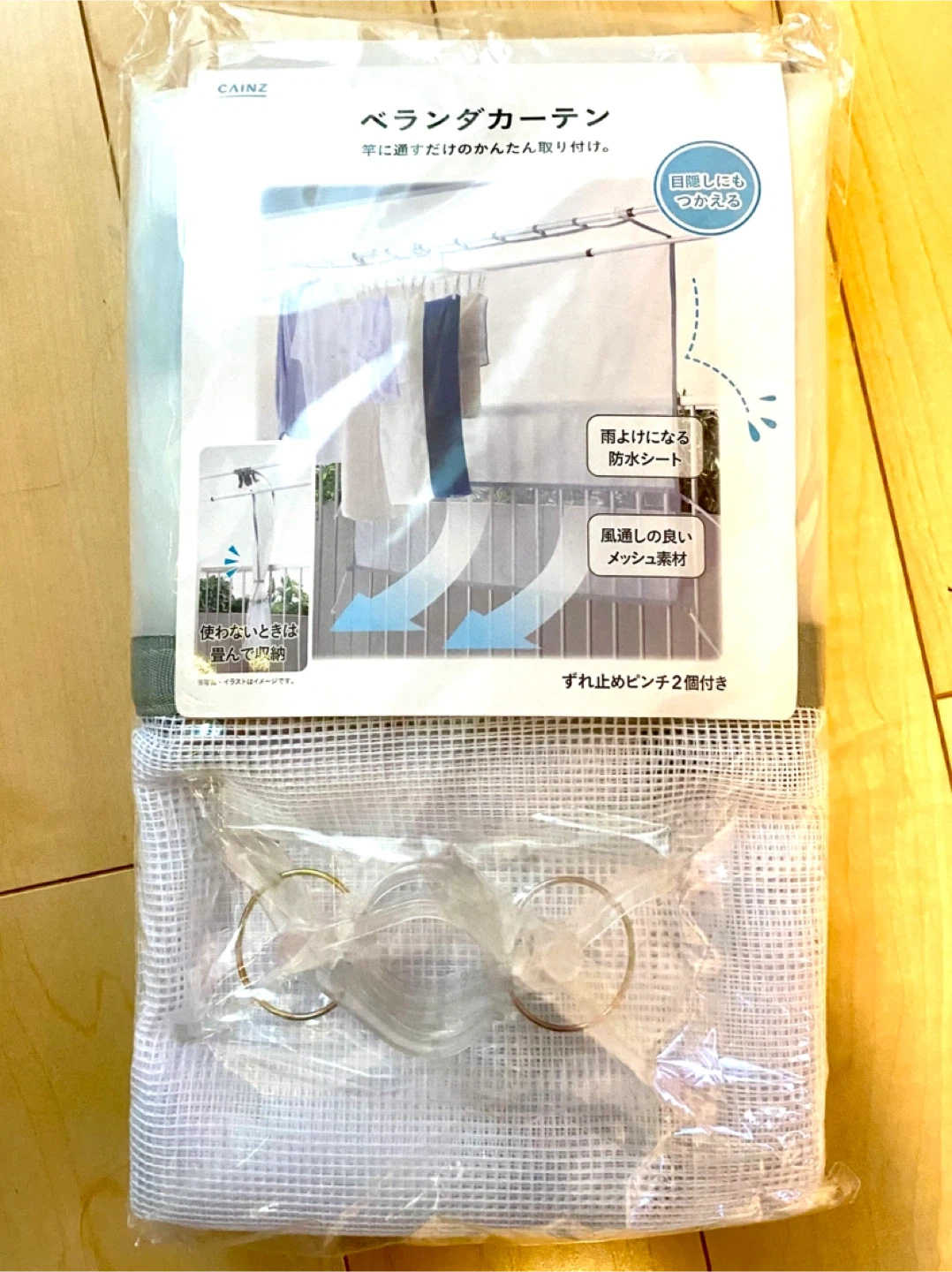 カインズのベランダカーテンです。 ・ベランダカーテン ・雨よけになる防水シート ・風通しの良いメッシュ素材 ・ずれ止めピンチ2個付き ・未使用時は畳んで収納可能 ・取り付け可能サイズ:竿から手すりまで4cm以下、手すりから床まで150cm以上、メッシュネット部分40cm ・商品状態:未使用・室内保管 中古品であるということをご了承の上、ご購入ください。 ご不明点等ございましたらご連絡ください。