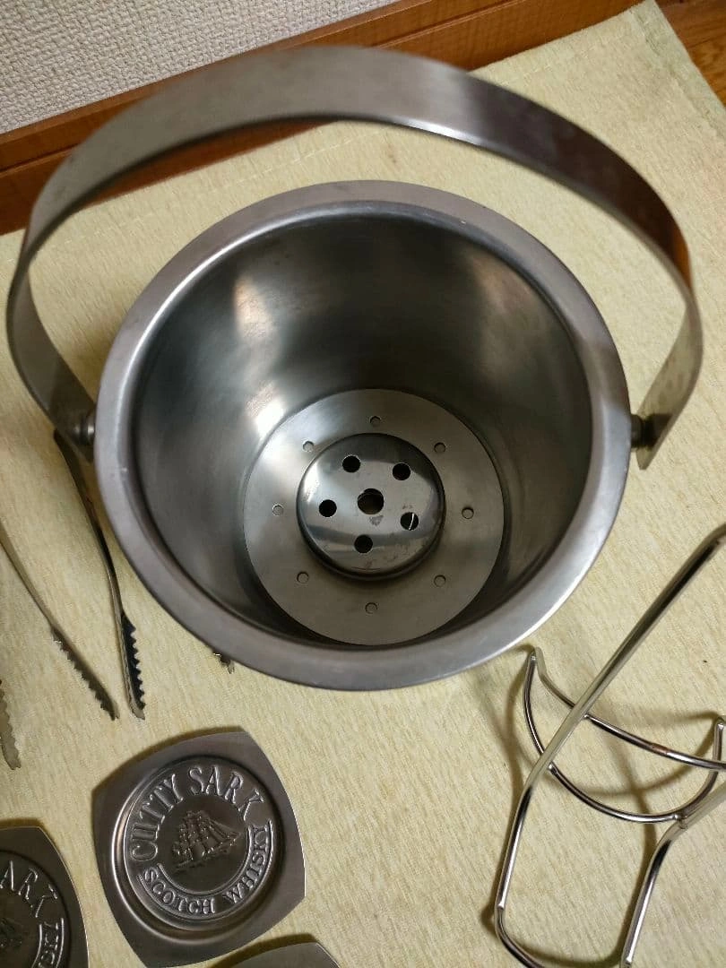 ご覧いただきありがとうございます。 カティサークの晩酌セットです。 ・アイスバケット(トング×3付き) ・ピッチャー ・ボトルスタンド ・コースター×4 ※cutty sarkは、1923年にロンドンで誕生したブレンデッドスコッチウイスキーです。 中古品であることをご理解の上、ご購入いただけると幸いです。 ご希望の方はお気軽にご連絡ください。