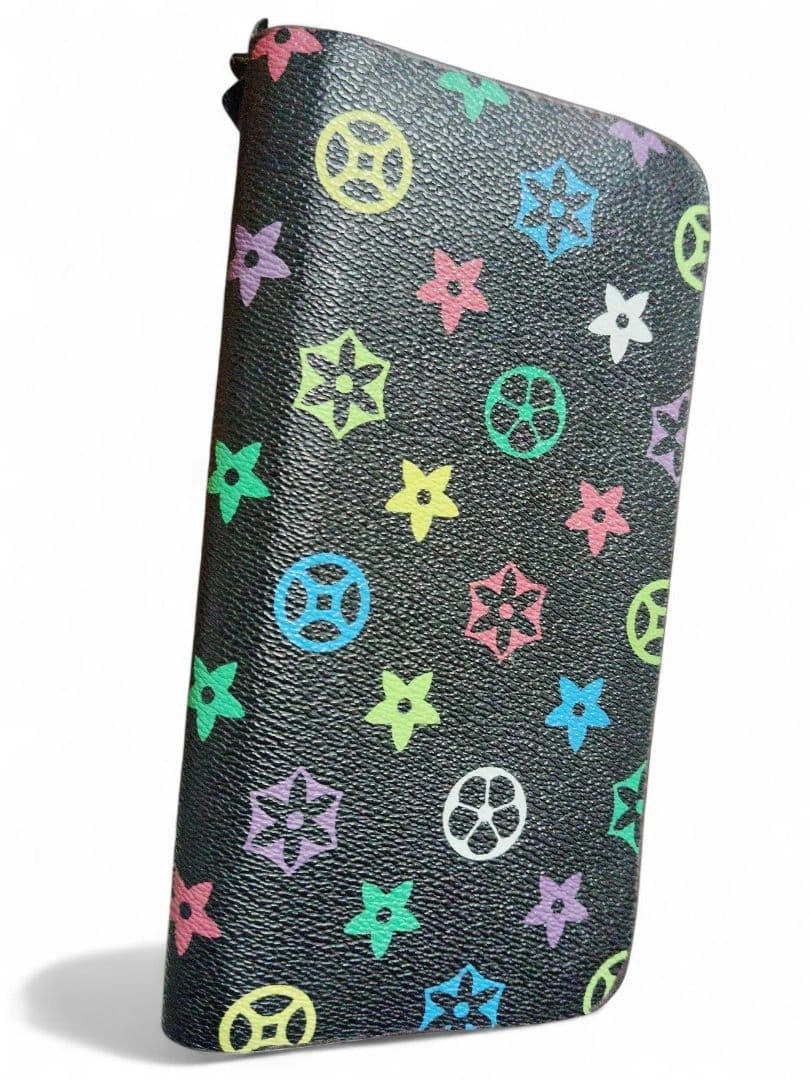 カラフルな星柄・フラワーモチーフが全面にデザインされた長財布です。 収納力があり、普段使いにぴったりのアイテムです。 ●カラー:ブラック × マルチカラー ●仕様:小銭入れ、カードポケット、多機能収納 ●状態:ほとんど使用感なし(画像でご確認ください) ●ノーブランド品です 気に入っていただける方にお譲りします。 ✅ 商品サイズ 縦:約20cm 横:約11cm 厚さ:約3cm ご覧いただきありがとうございます。
