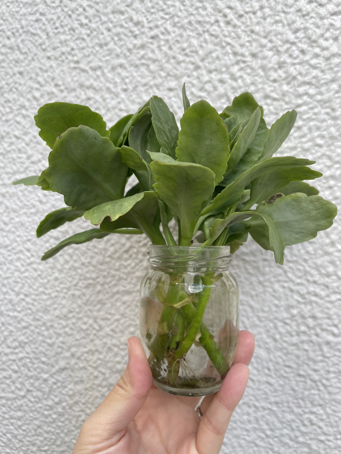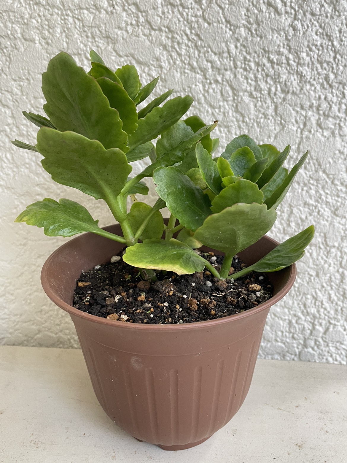 ご覧下さりありがとうございます。 お庭で育てているカランコエです。 今は葉っぱのみですが、春に赤い花が咲きます。 大きくなってきたら剪定し、水に浸けておくと根っこが出てきます。 それを植えればどんどん増やせます。 数年前に頂いた一株が、今ではたくさん増えました。 大切に育ててくださる方がいらっしゃいましたら、ぜひお迎えお願い致します(^^) 鉢の大きさ:直径約14cm 現在の大きさ:鉢も含めて約25cm 鉢も込みです。 受け皿はございませんので、ご自身でご用意お願い致します。 お店で売っているような完璧なものではございません。 個人で育てたものということをご理解下さい。 よろしくお願い致します。