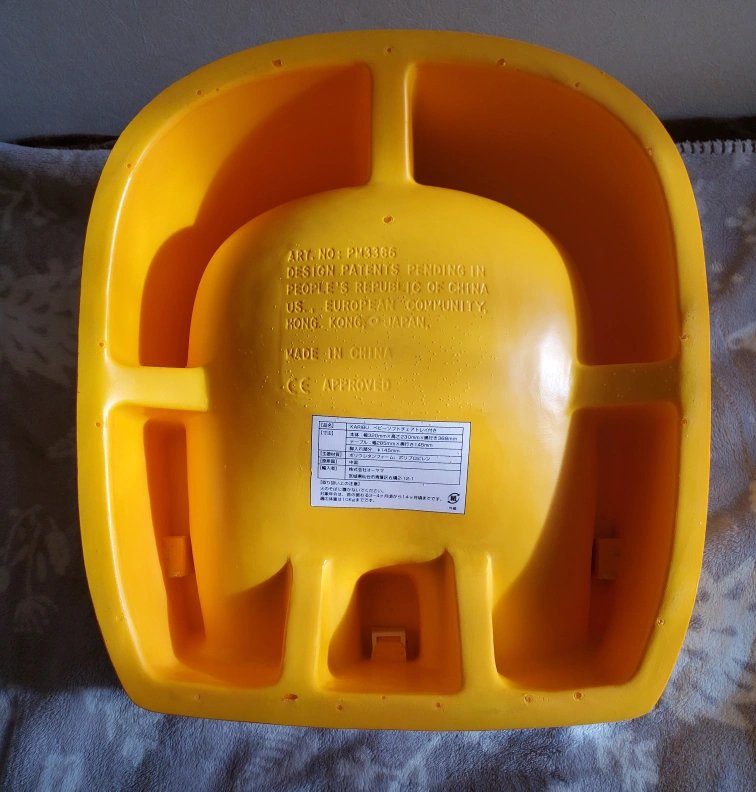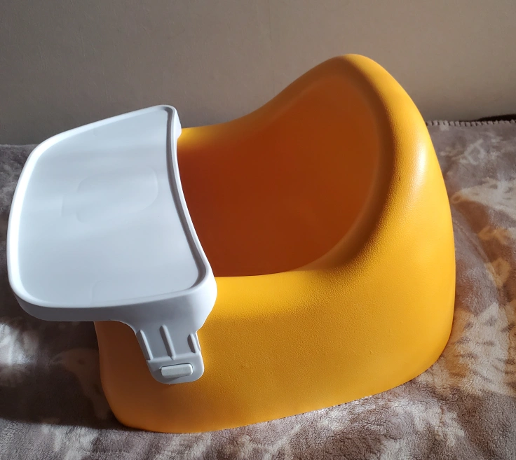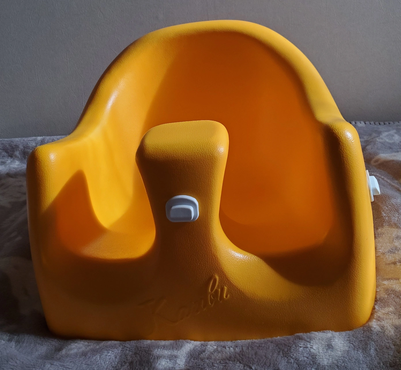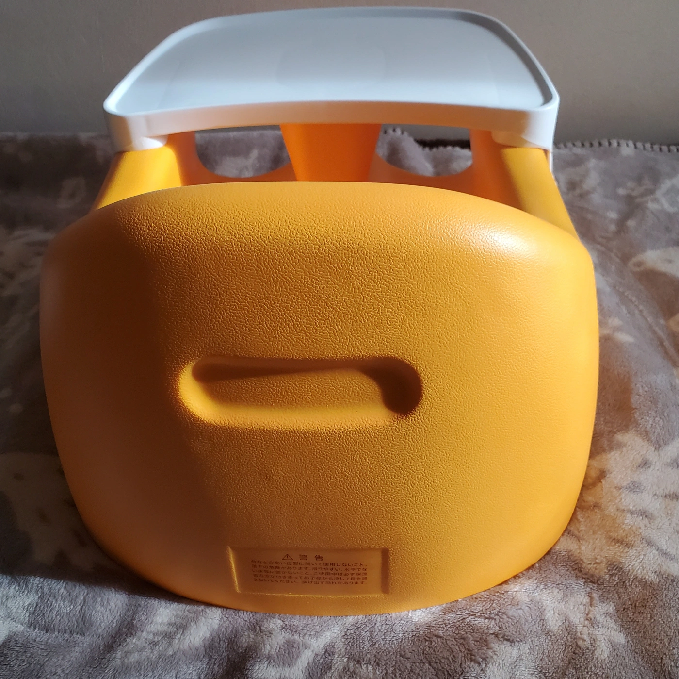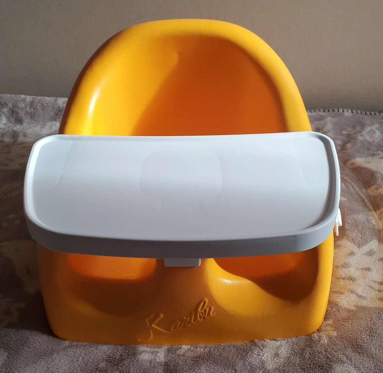 取り外し可能なテーブル付きのイエローベビーチェア。 大きい子向けのシートになります。 太ももが太めでも安心して使えました。 離乳食事やお風呂などに、腰が座る前から使用可能です 。 小さい汚れがございます。また、テーブルはやや固めのため、シートに取り付ける際、手こずりますが、問題なく使えました。 - 色: イエロー - テーブル: 取り外し可能なホワイトテーブル - ブランド名: Karibu 2021年に購入。10ヵ月程使用しておりました。