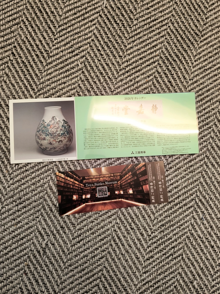 カレンダーと博物館招待券です。 ・2026年のカレンダー ・東洋文庫ミュージアムの招待券(無料)