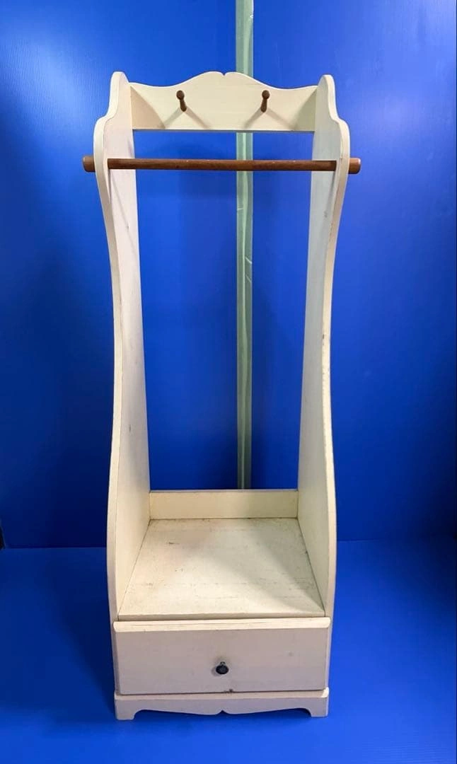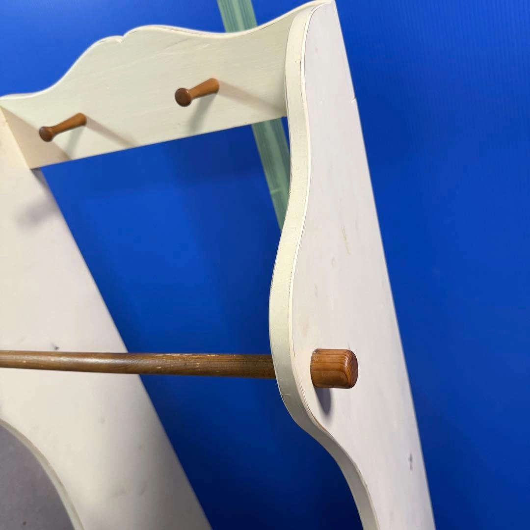 【商品名】 カントリー ハンガーラック 【状態】 状態は写真にてご確認お願いします。 埃や汚れは清掃いたします。 【サイズ】 全体 横幅 48cm 奥行き 55cm 高さ 150cm 引き出しサイズ 横幅 45.5 奥行き 35cm 高さ 13.5cm 【使用年数】 5年〜6年程度 倉庫にて保管しておりました。 【配送】 1.引き取りの場合 ・埼玉県東松山市 ・神奈川県藤沢市 2.配送の場合 お近くでしたらお運び出来ますが、その際は場所によってご料金を考えますのでコメントお願いします。 コメントしていただけるとスムーズにやり取りできます。 ご連絡なしに購入の場合はこちらの選択する配送方法になりますのでご注意ください。 【注意】 ①中古品の理解ある方のみご購入下さい。 ②商品説明を確認せずご購入はご遠慮ください。 ③発送前に清掃、消毒、動作確認などしますので少しお時間いただく場合があります。(早めに発送希望の方は購入後ご連絡ください。) ご希望の方はお気軽にご連絡ください。