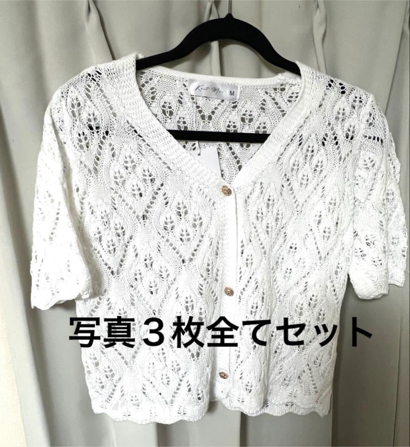 カーディガン3枚セットです。 ・カーディガン3枚セット ・デザイン性のある編み方 ・白色と黒色のカーディガン 未使用 新品 写真1〜3まで3枚セット サイズMもしくはフリーとなります。 1枚目 丈 50センチ 横幅 45センチ 袖丈 29センチ 袖丈···半袖 2枚目 ボレロ 七分袖 丈27cm 横幅47cm 袖丈35cm 3枚目 丈61cm 横幅59cm 袖丈35cm 引っ越しのため、断捨離となります。 他のサイトでも出品してますので、無くなり次第削除致します。予めご了承くださいませ。 中古品であることをご了承ください。
