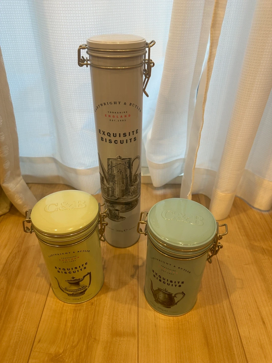 カートライトアンドバトラーのビスケット缶セットです。中身はありません。 ・ブランド:カートライトアンドバトラー ・種類:ビスケット缶 ・色:グリーン、イエロー、グレー ご不明点があればお気軽にご連絡ください