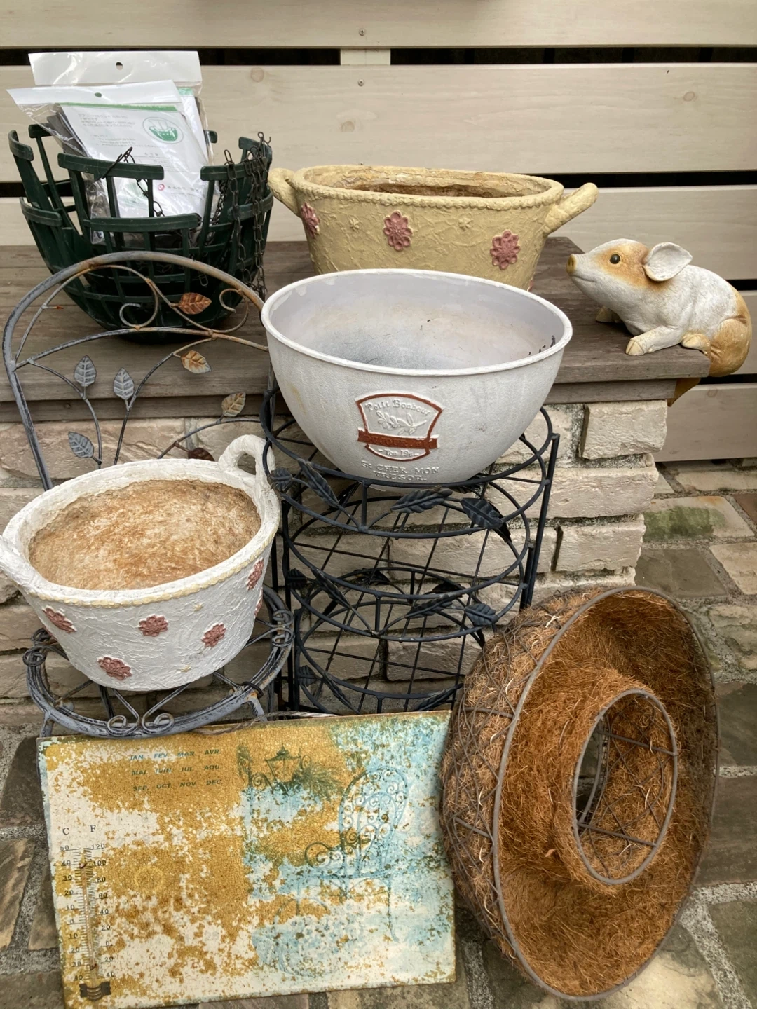 ガーデンテーブル フラワースタンド 鳥のオブジェ付き