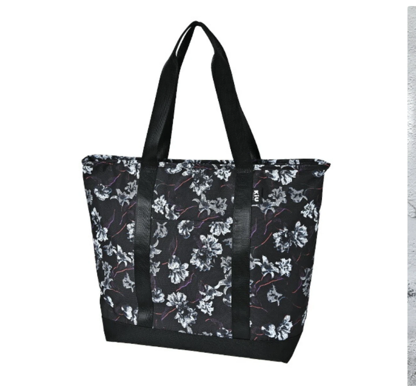 キウの肩かけトートバッグです 開封後未使用のまま保管していました、美品です♪ ・ブランド:kiu ・色:ブラック地に花柄 ・素材:ポリエステル100% ・容量:18L ・サイズ:幅46cm、高さ36cm、奥行き15cm ・重量:440g ・耐荷重:10kg ・A4サイズ、PC収納可能 ・ベルト付きポケット 撥水なので雨の日も便利です 日によって明大前駅も可能ですのでご相談ください^ ^