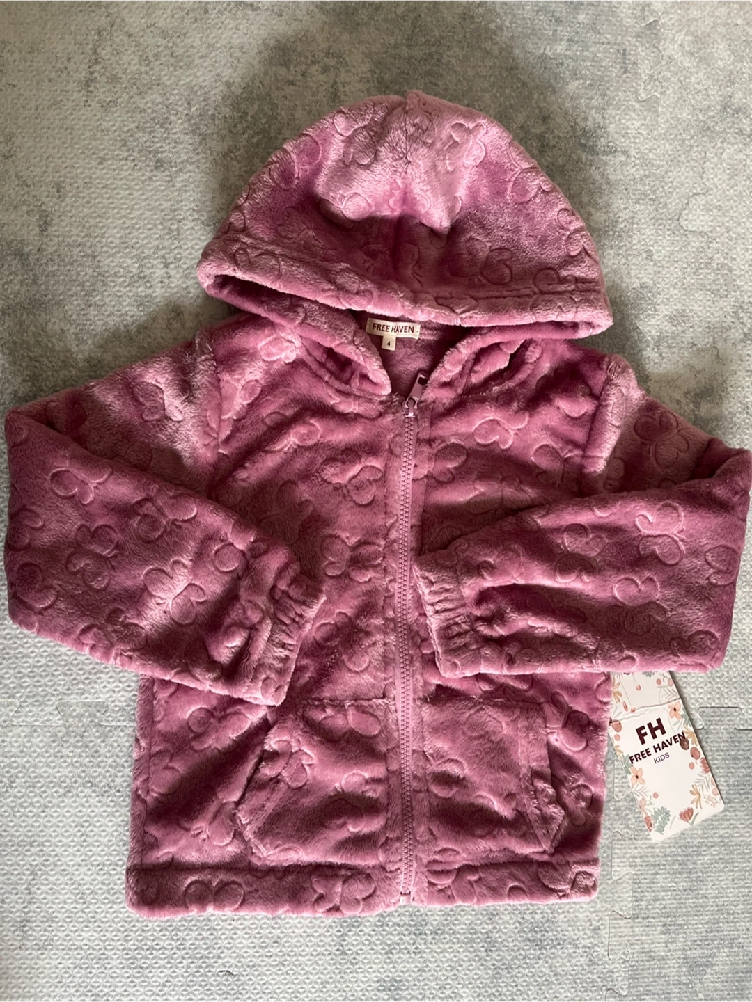 アメリカで購入したフード付きキッズ用パーカーです。肌触りが良い生地です。 ・サイズ:4(キッズ) ・カラー:ピンク ・デザイン:ちょうちょ柄 ・状態:新品未使用品 東北沢駅、下北沢駅でお願いします。
