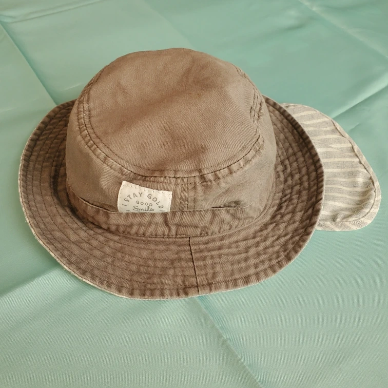 キッズ帽子です。 ・サイズ:52cm ・品番:EC22SS05101 ・デザイン:首の日除け付 ・状態:使用感あり 子供の使用品になります。ご理解の上、ノーリターン・ノークリームでお願いします。 ご不明あればご連絡ください。 名前はぬりつぶしてのお渡しをさせていただきます。