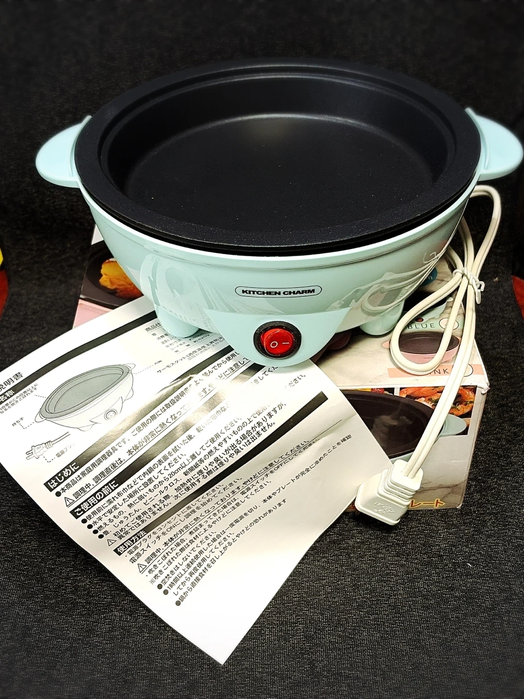 キッチンチャームのラウンドホットプレートです。 ・ブランド:キッチンチャーム ・プレートサイズ直径:約17cm ・カラー:ブルー ・状態:未使用品 ご不明点があればお気軽にお尋ねください。