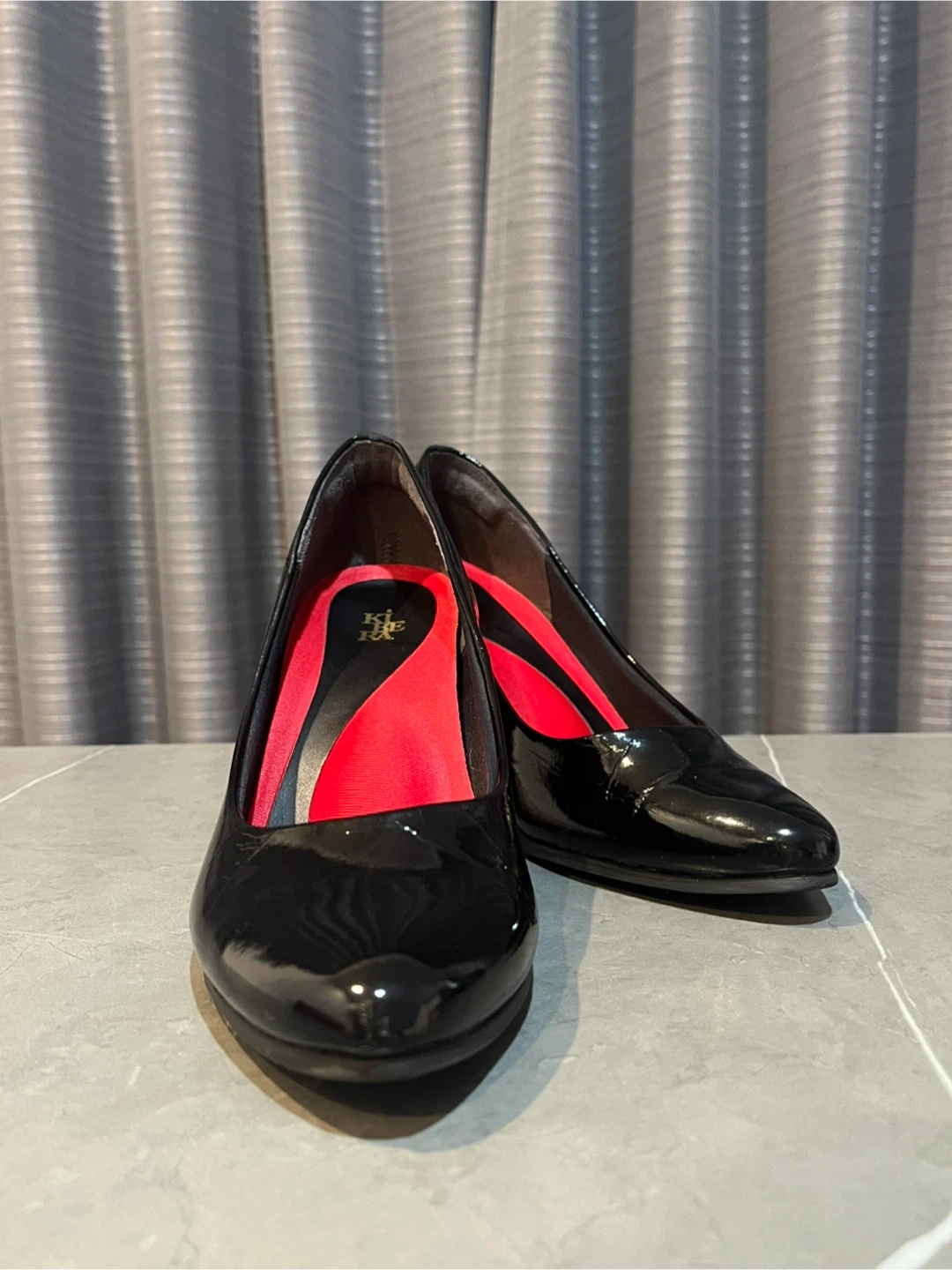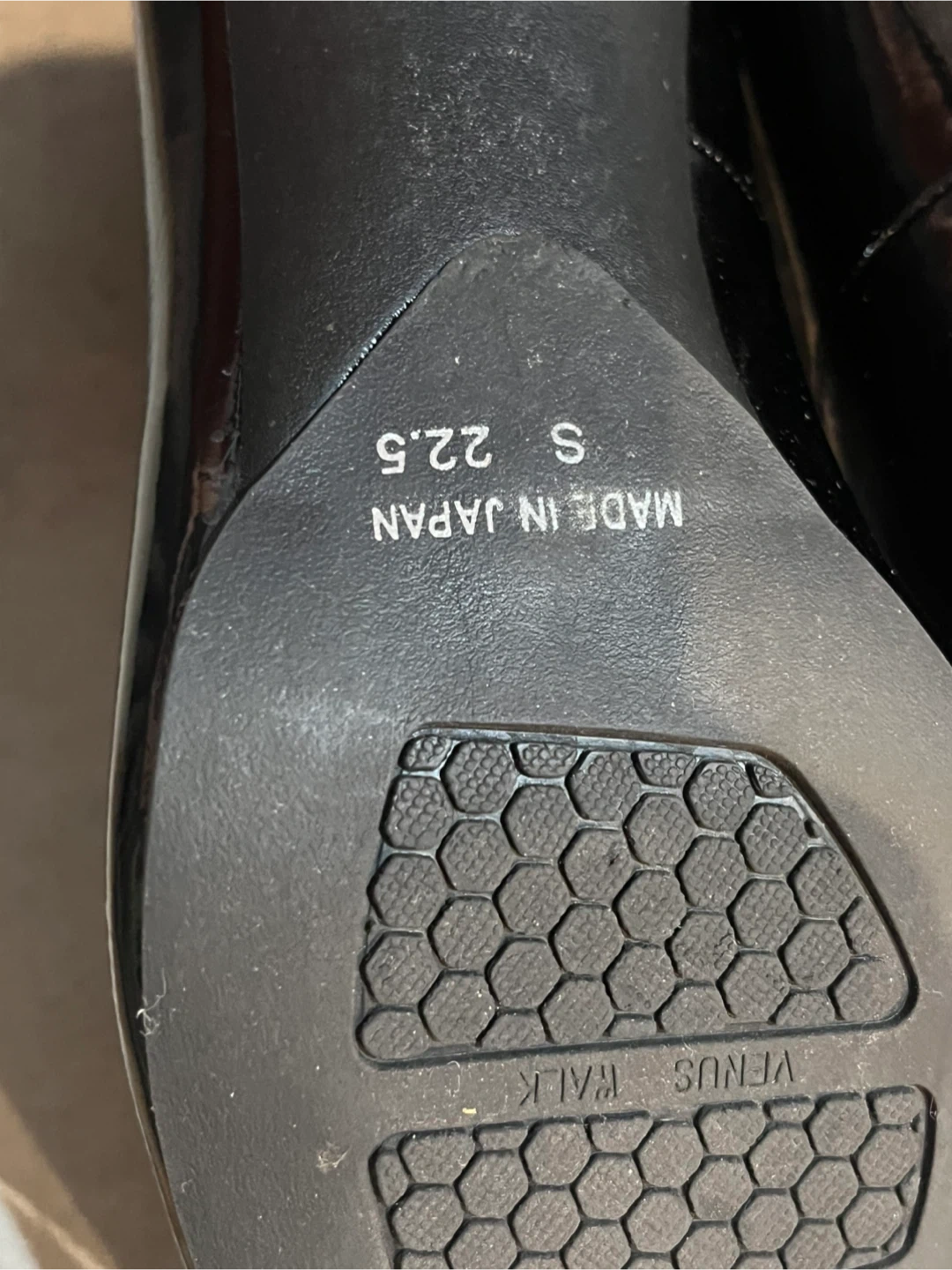 :*:・'゜☆.:*:・' .:*:・'゜☆' .:*:・'゜☆' .:*:・'゜☆' .:*: キビラのパンプスです ・カラー:ブラック ・サイズ:S(22.5cm) ・インソール:レッド ・MADE IN JAPAN ・ヒールのゴム部分や 外側は 折り目 擦れ あります。 ✅ご購入されるかは、ご試着されてからお決めください。 :*:・'゜☆.:*:・' .:*:・'゜☆' .:*:・'゜☆' .:*:・'゜☆' .:*: 以下、キビラのウェブサイト等から 引用した説明です。 ↓ 素材はラムエナメル素材を使用 艶感があり足元を輝かせます。 またストレッチ性に優れており柔らかい 高品質イタリアンレザーを使用した日本製ハイヒールパンプス。 ◇イタリアンレザーならではの足なじみ、耐久性、柔らかさ、風合い、発色、美しさ。 ◇【一体成型3Dインソール】により、縦だけでなく横からの荷重にも対応し、足裏にかかる体重を分散。 ◇美脚効果と履きやすさを実現する7.5cmヒール。 ◇アウトソールは滑りにくく、歩く際にコツコツと音のしない消音機能のあるリフトを装備。 ※本革(天然皮革)の商品について 素材の特性上、多少のキズやシワ、色ムラや擦れが見られる場合がございます。 汗や雨などで濡れた場合、色移りする場合がございます。革の品質保持のため、できるだけ濡らさないようご注意下さい。 サイズ 22.5cm 色 ブラックエナメル(9) 素材 ラムエナメル ヒールの高さ 7.5cm 靴幅 2E(普通) 原産国. 日本