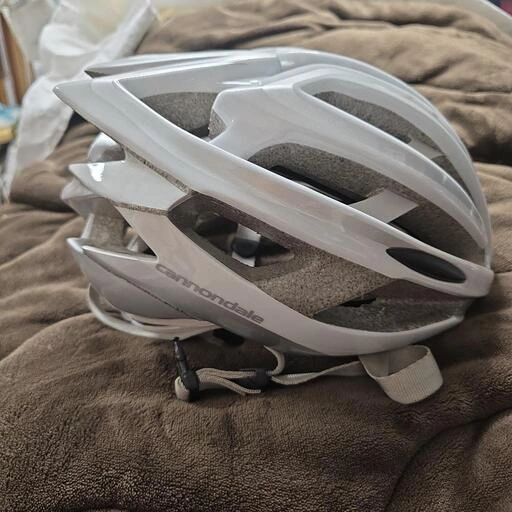 中古品です。 使用感はありますが、手で触ってわかる傷は後ろに一箇所あります。その他は特に目立つ傷もなく比較的きれいです。 発砲スチロール部分には多少の傷がありますが、特に目立たないかと思います。 気になる方はご遠慮ください。 ブランド: Cannondale キャノンデール TERAMO テラモ カラー: ホワイト×シルバー ロード・マウンテン用ヘルメット サイズ XL/58-62cm 重量 245G ご希望の方はお気軽にご連絡ください。
