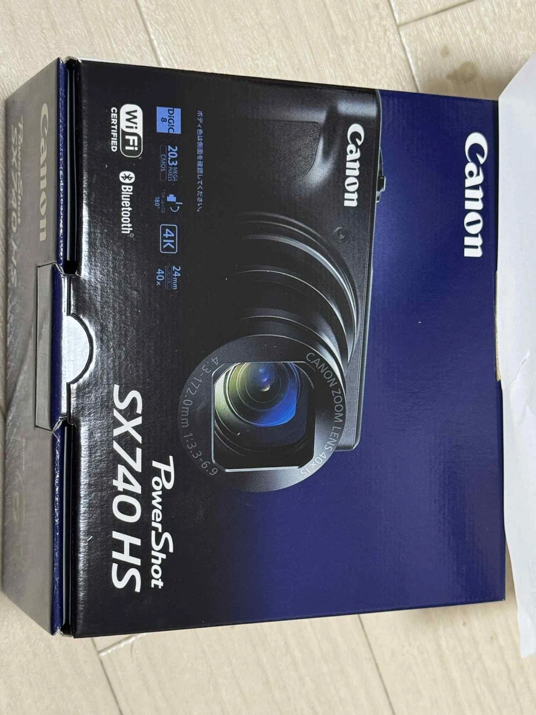 Canon PowerShot SX740 HSの新品未使用品です。24時間以内に発送いたします。 10月7日joshinで購入、10月9日届き、レシート付き メーカー保証書付き 【ブランド】Canon 【モデル】PowerShot SX740 HS 【画素数】20.3メガピクセル 【動画】4K対応 【ズーム】光学40倍 【接続】Wi-Fi、Bluetooth PowerShot SX740 HS (ブラック) ブランド:キヤノン PowerShot 撮像素子サイズ:1/2.3型 有効画素数:2030.0 万画素 記録画素数(動画):フルハイビジョン(1920×1080) ハイビジョン(1280x720) 4K UHD(3840×2160) 光学ズーム(倍):40.0 倍 手ブレ補正:光学式 フォーカス:顔認識 マニュアルフォーカス ピーキング シャッター、ドライブ:連写撮影 撮影機能:タイムラプス 自分撮り デジタルフィルター 動画 ファインダー:ファインダーなし 液晶モニタータイプ:チルト液晶(180°回転) ネットワーク:Wi-Fi Bluetooth BLE(Bluetooth Low Energy) 撮影可能枚数:265.0 枚 本体総質量:299.0 g 色:ブラック系 対応メディア:SDカード SDHCカード SDXCカード 最高感度(ISO):3200.0 ISO 撮像素子特徴:裏面照射型 バッテリー系機能:USB充電