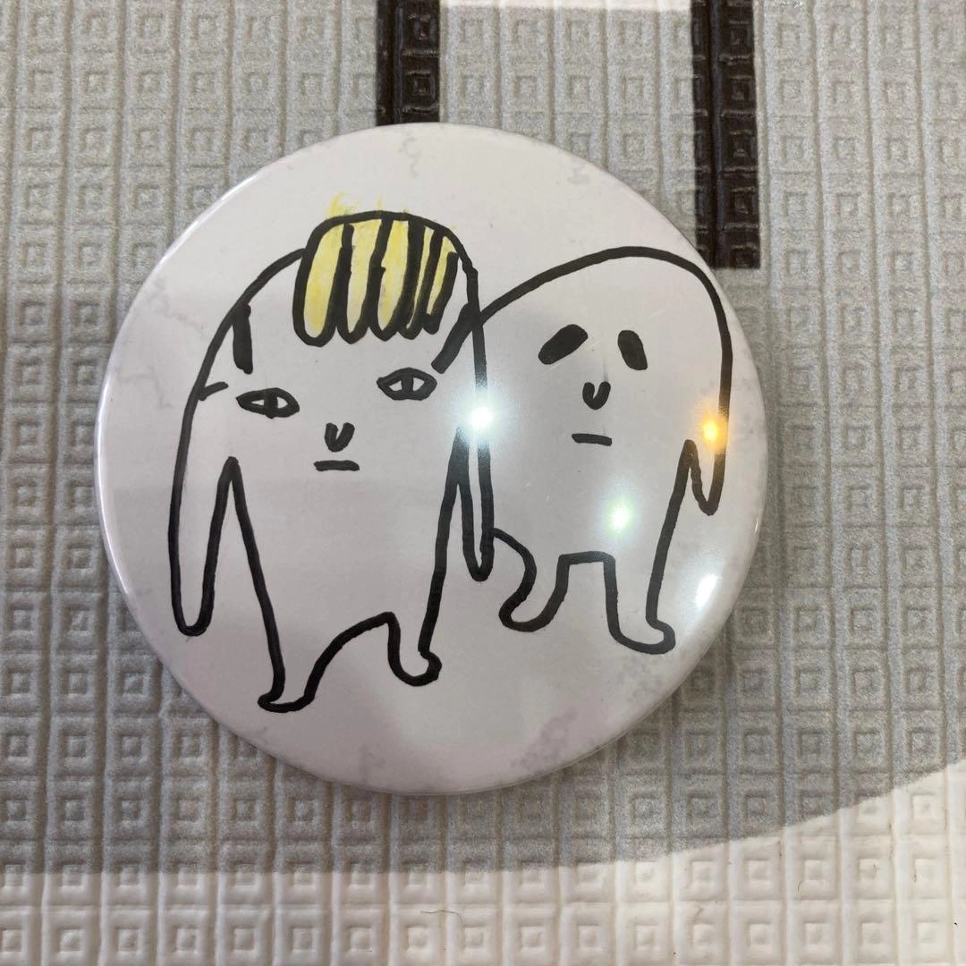 ユニークな二人のキャラクターが描かれた丸型ピンバッジです。 - デザイン: 二人のキャラクターが描かれたデザイン - バックピンタイプ: 安全ピン式 - 色: ホワイト - 形状: 丸型 ご覧いただきありがとうございます。 ご希望の方はお気軽にご連絡ください。