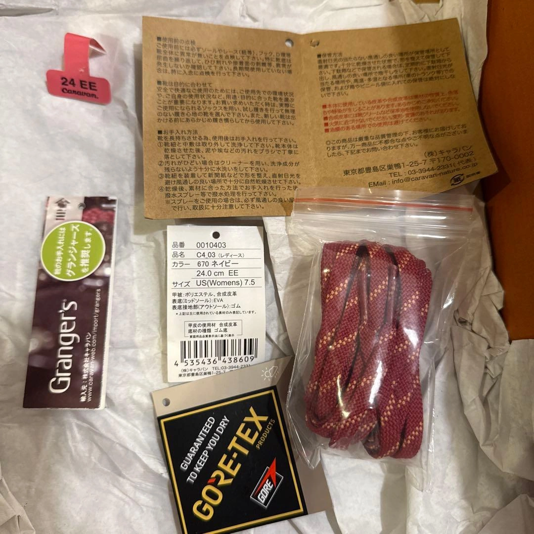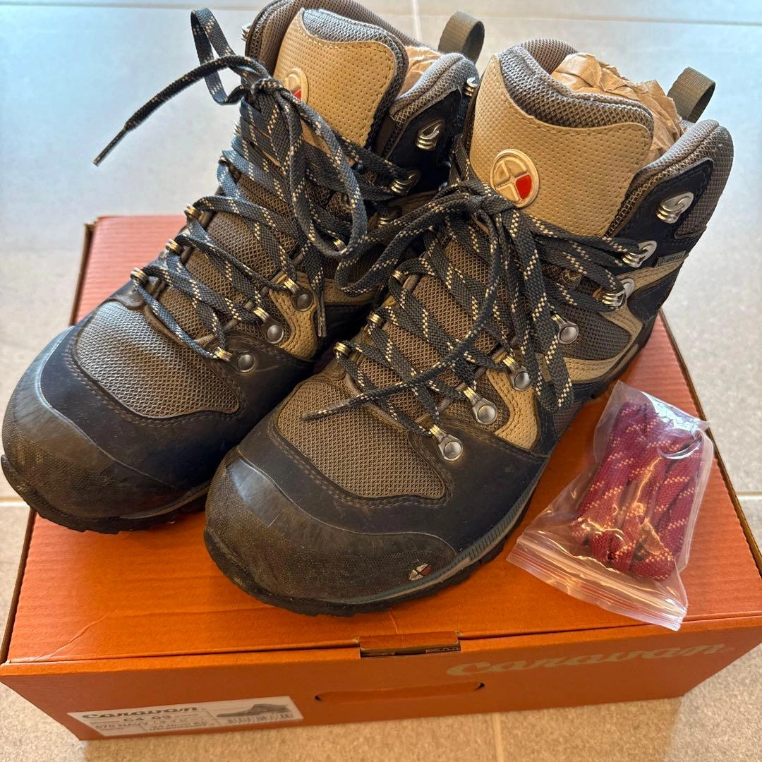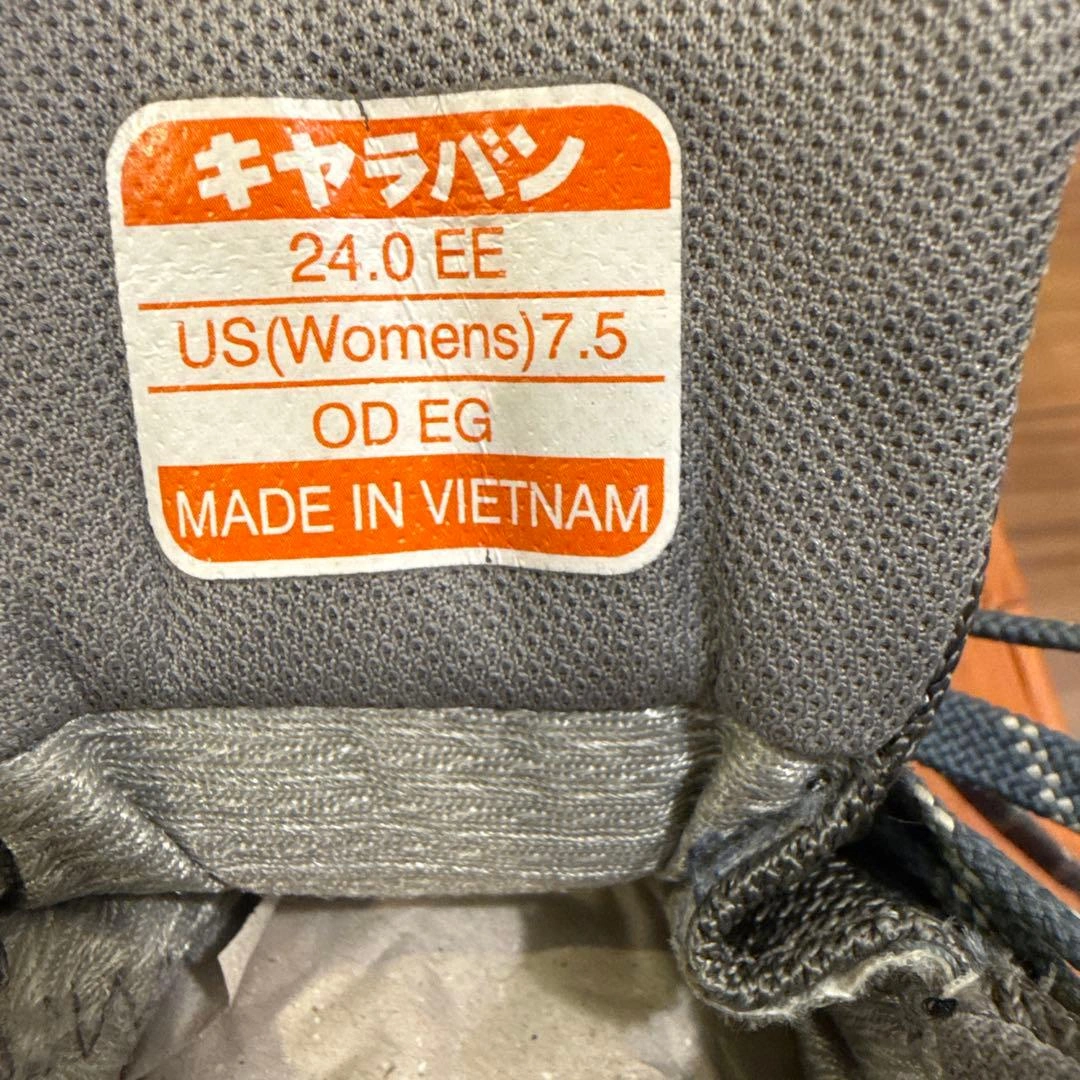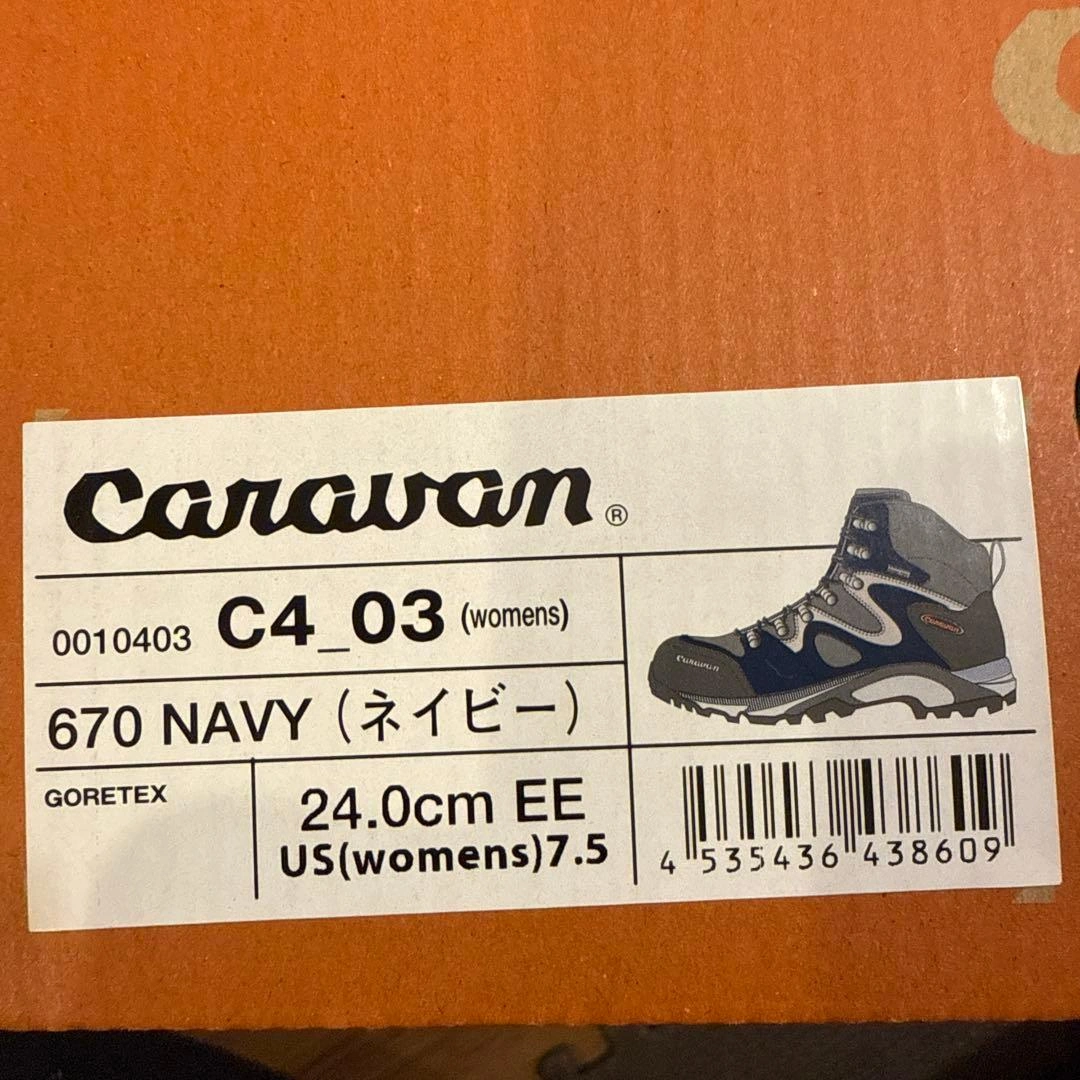 子供が1度北アルプス登山に使用後、サイズアウトしました。 まだまだご使用頂けると思います。 caravan トレッキングシューズ ネイビー OD-EG キャラバン 登山靴 サイズ:24.0cm color:670 別色シューレース新品付き(袋に入っている靴紐は未使用品です)。 ●重量:約470g(24.0cm片足標 準) ●ワイズ:2E(レギュラー) キャラバンの箱に入れて保管していました。 素人の自宅保管のため、神経質な方はご遠慮ください。
