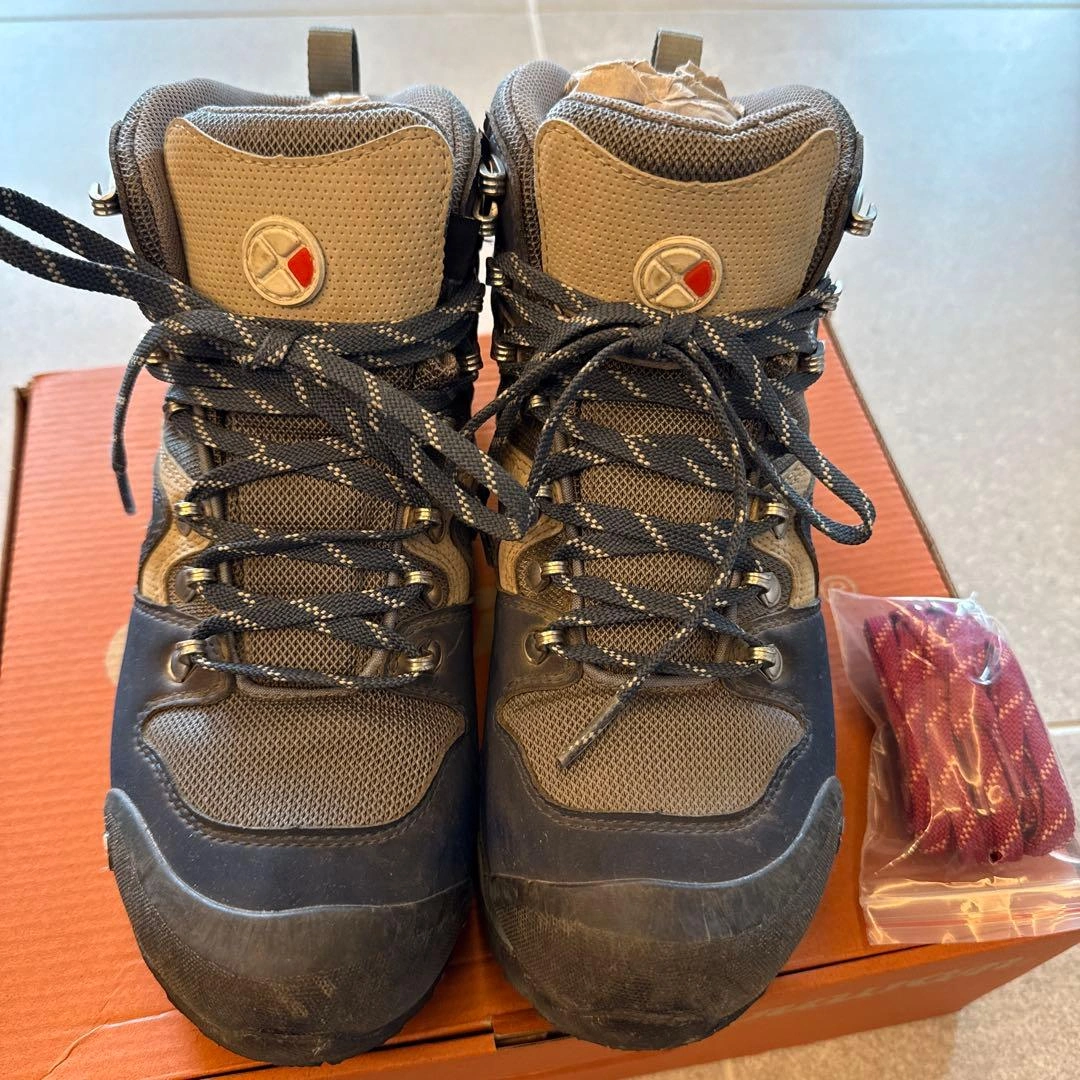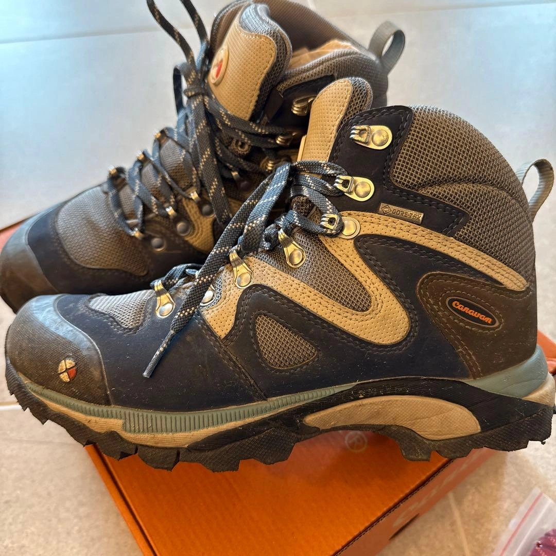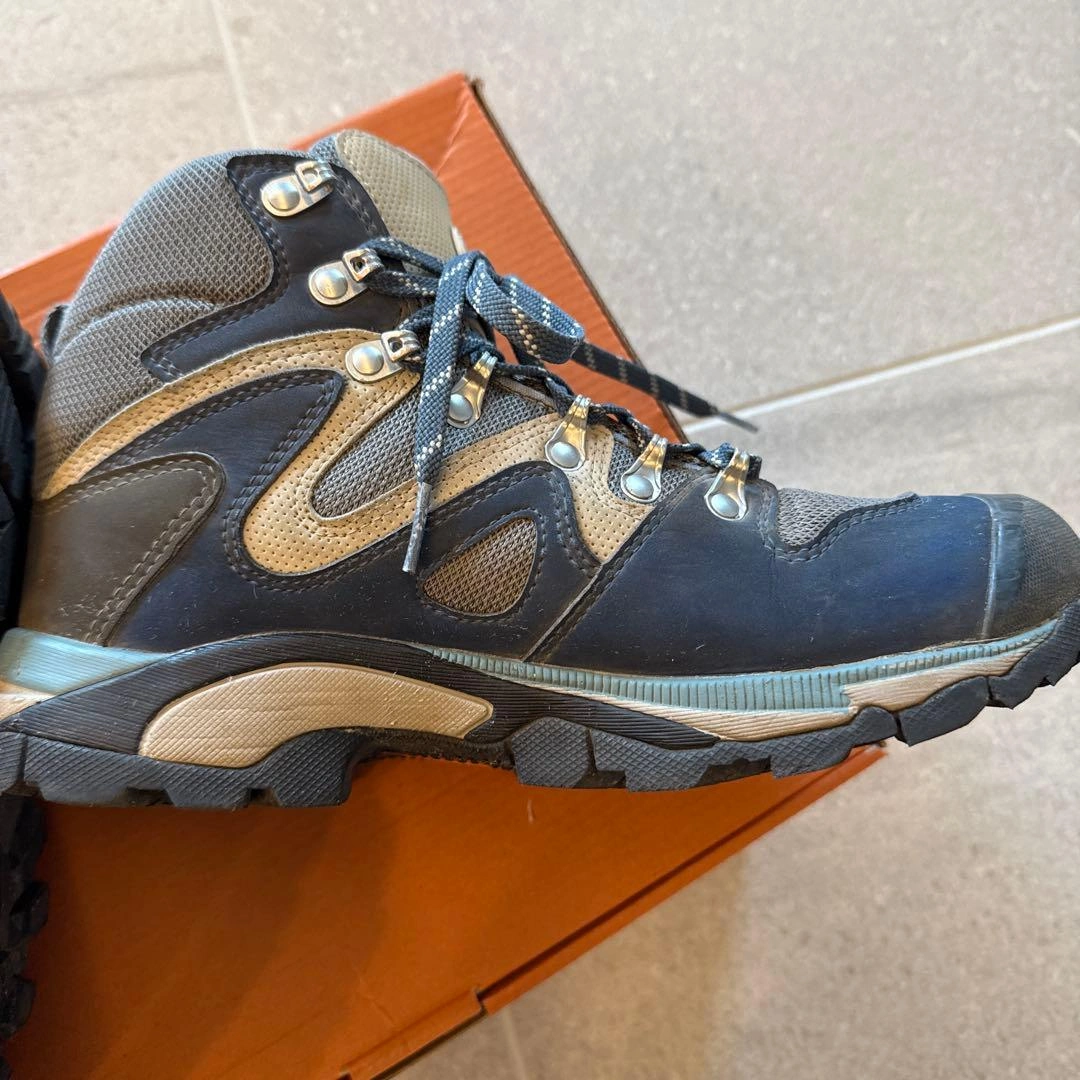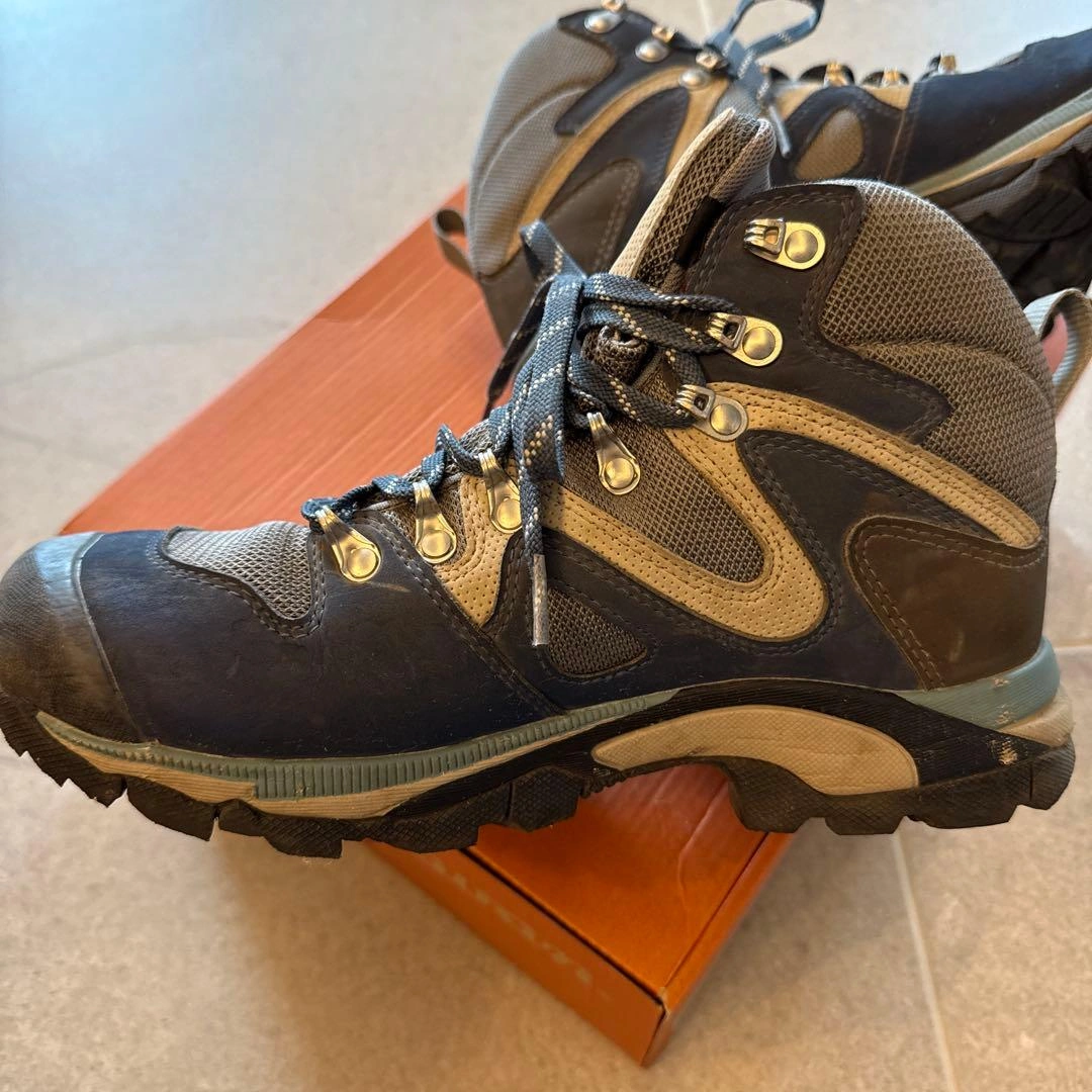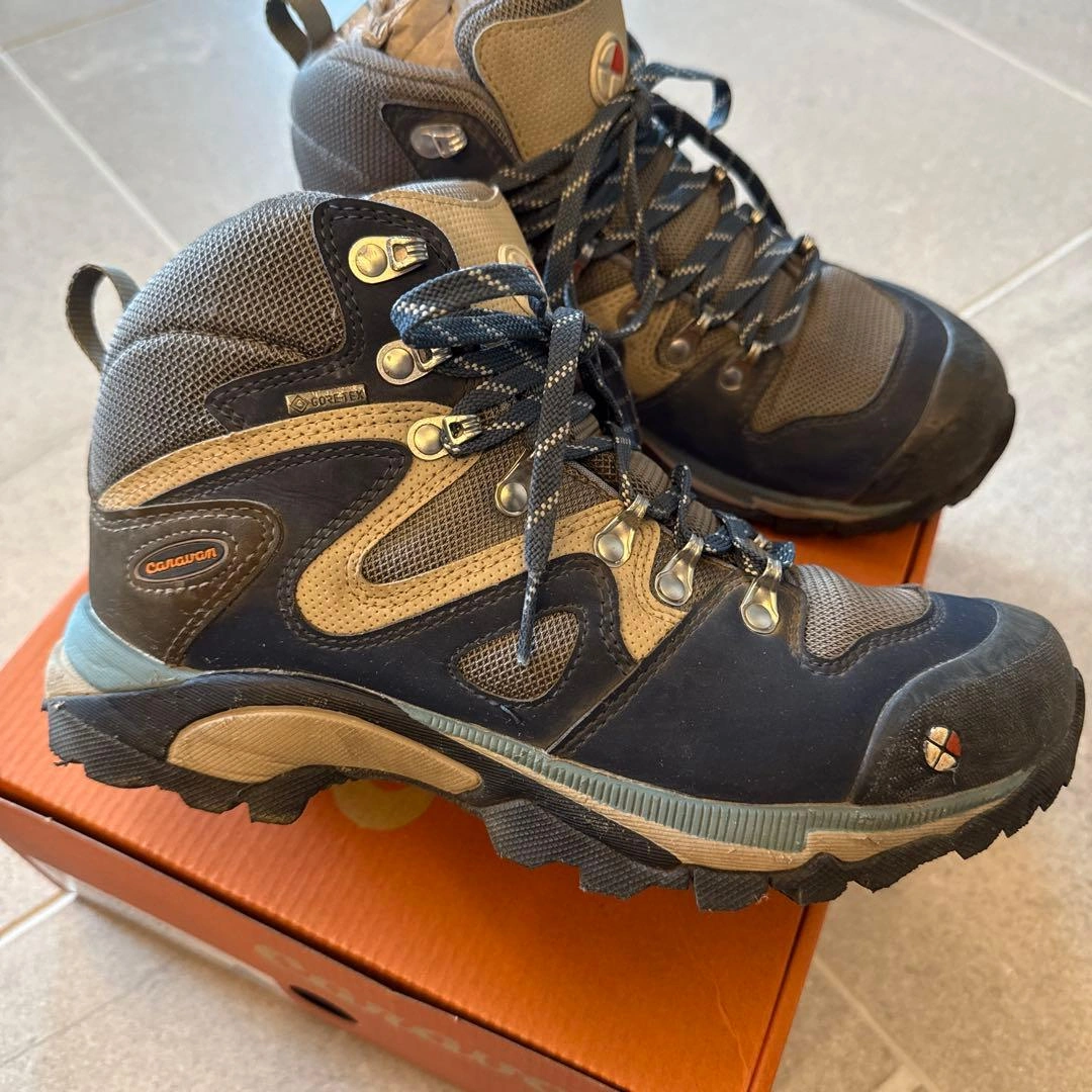 子供が1度北アルプス登山に使用後、サイズアウトしました。 まだまだご使用頂けると思います。 caravan トレッキングシューズ ネイビー OD-EG キャラバン 登山靴 サイズ:24.0cm color:670 別色シューレース新品付き(袋に入っている靴紐は未使用品です)。 ●重量:約470g(24.0cm片足標 準) ●ワイズ:2E(レギュラー) キャラバンの箱に入れて保管していました。 素人の自宅保管のため、神経質な方はご遠慮ください。