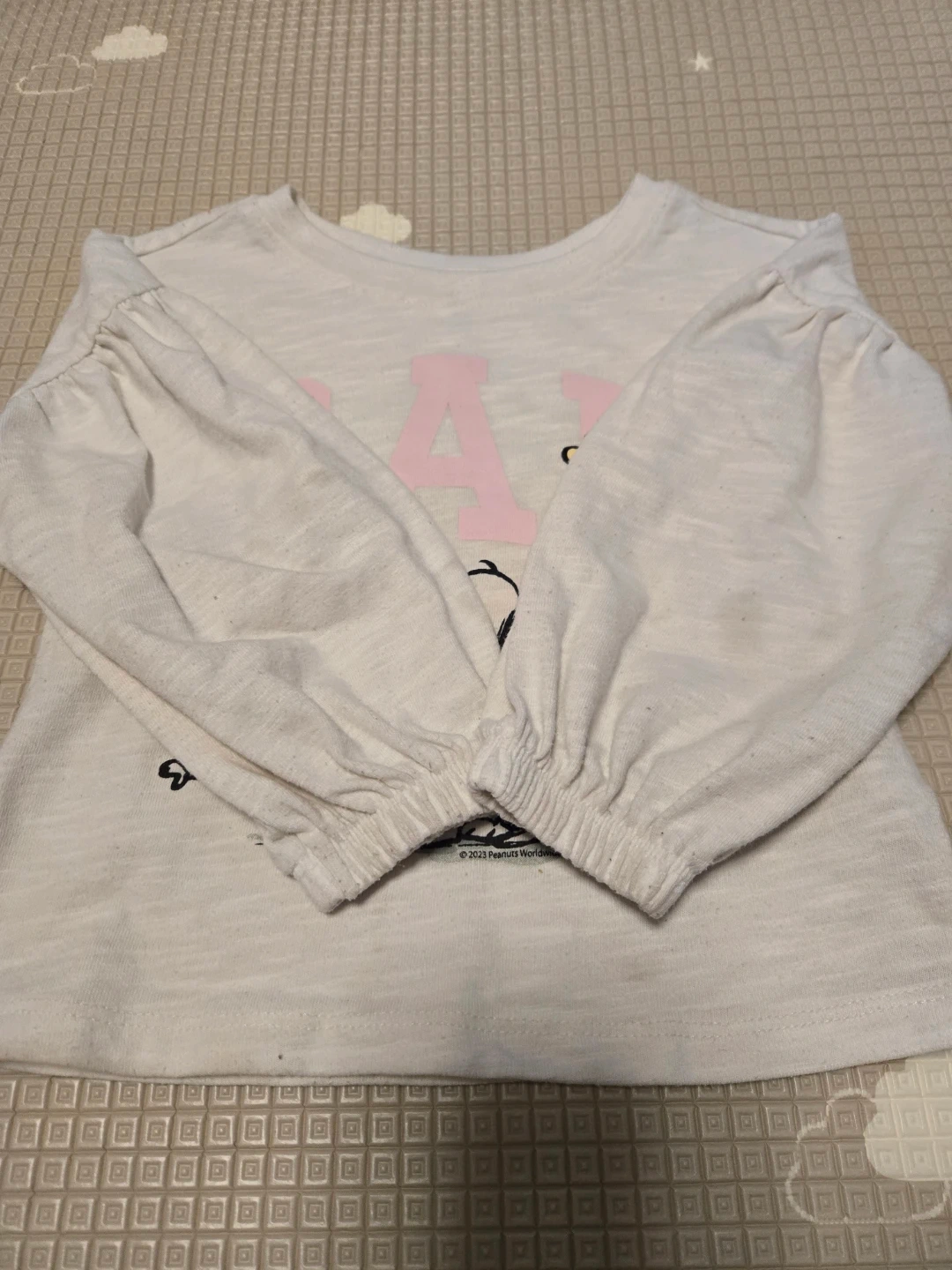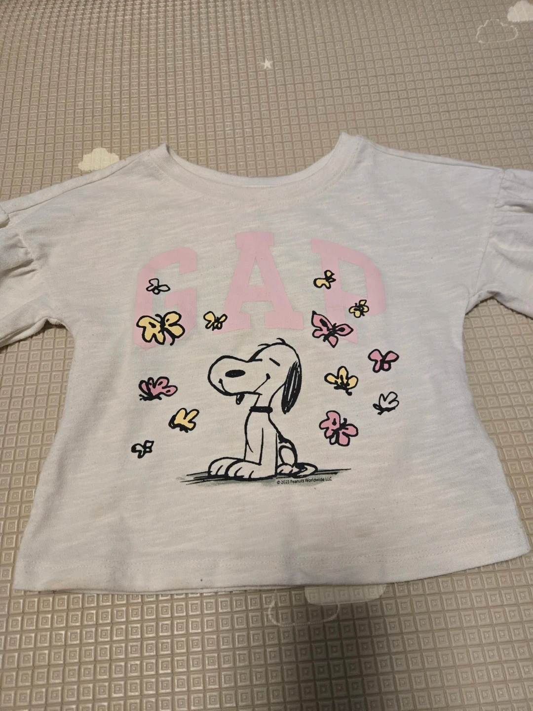 GAPのスヌーピーのTシャツです。 ・ブランド:GAP ・デザイン:スヌーピー、蝶 ・色:白、ピンク ・状態:使用感あります 袖がバルーンになっているので可愛いです。 まだ着ていただけると思うので欲しい方いればお気軽にご連絡ください。 中古品であることをご了承ください。