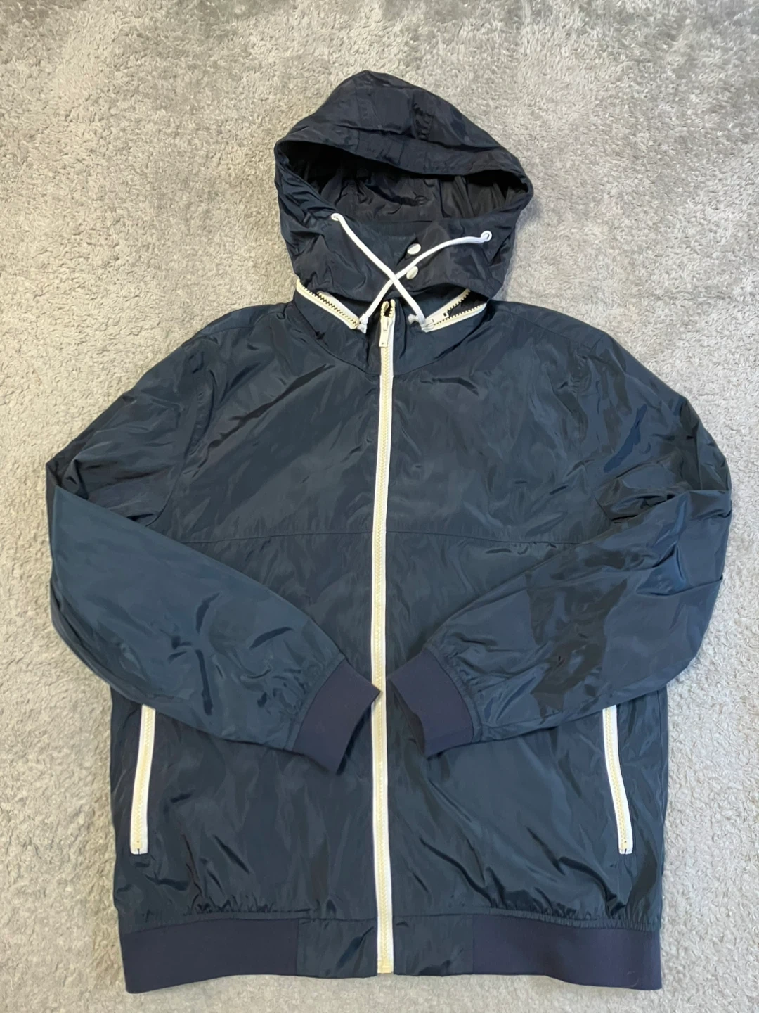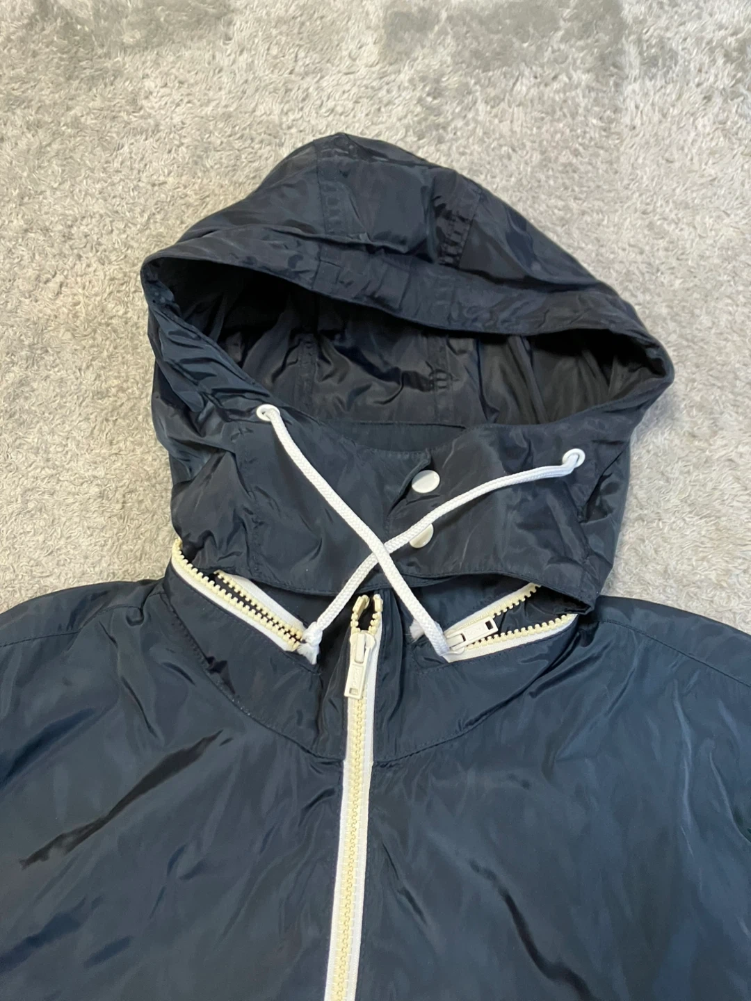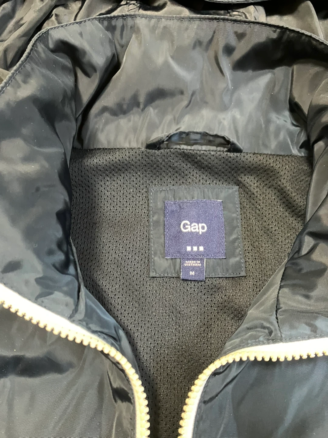 ギャップのナイロンジャケットです 風を、通しにくい厚みのあるナイロンジャケットです。 身幅55cm 着丈62cm ・ブランド:ギャップ ・サイズ:M ・色:黒に近いネイビー ・状態:使用感少なめ 中古品であることご了承ください
