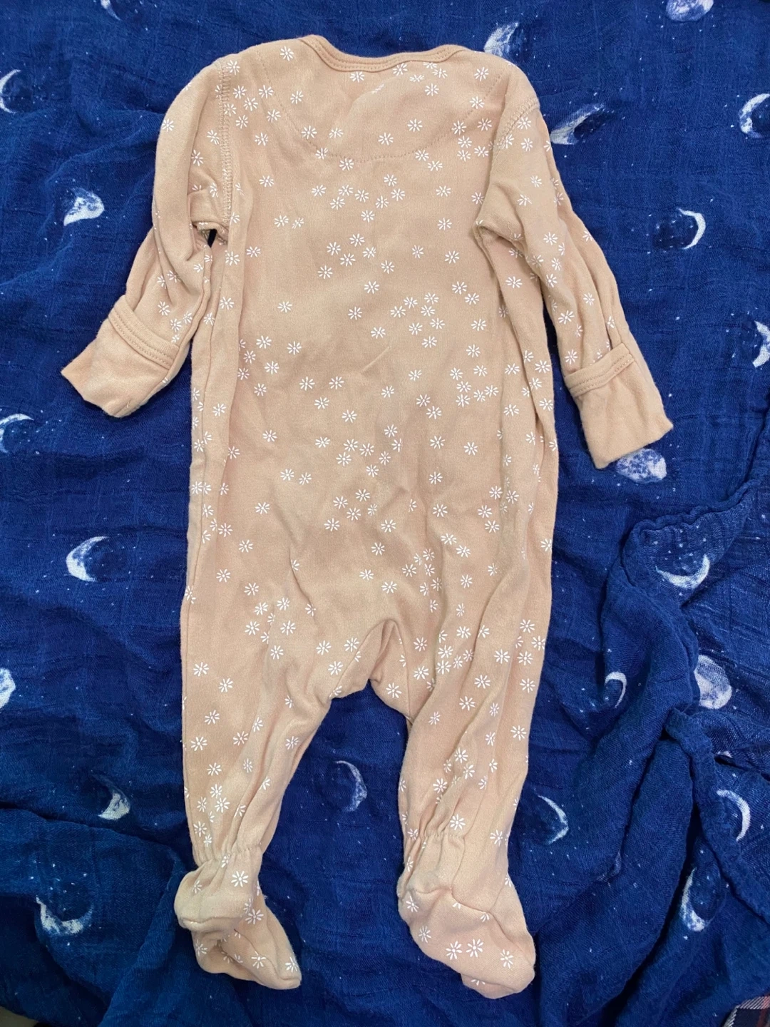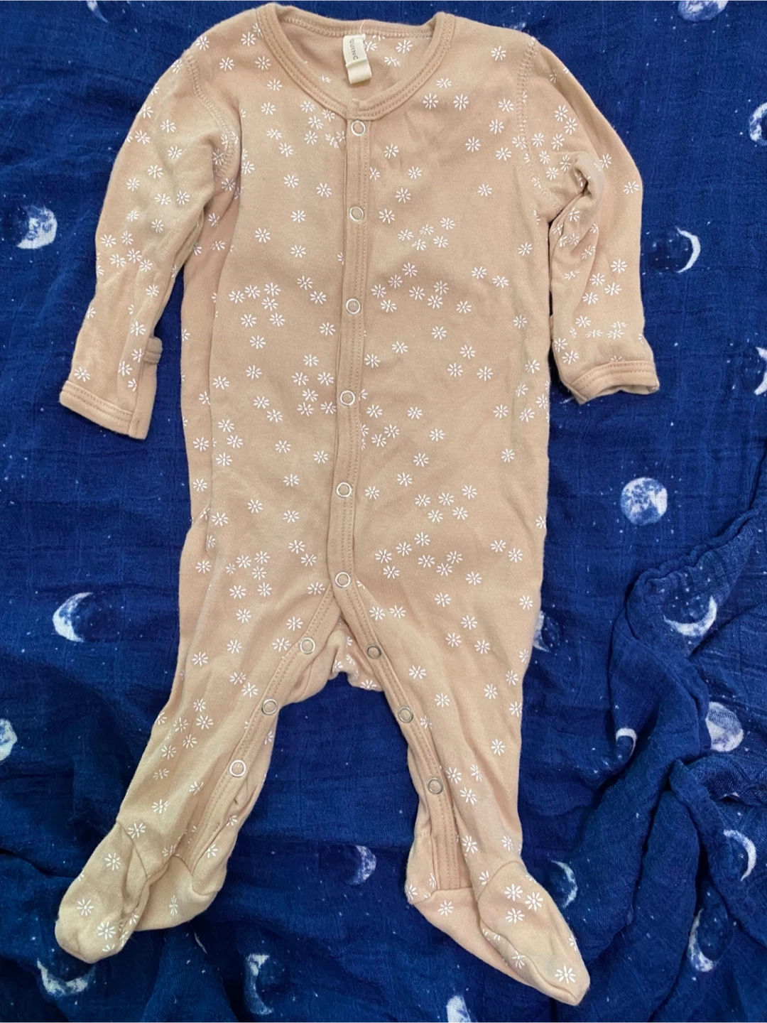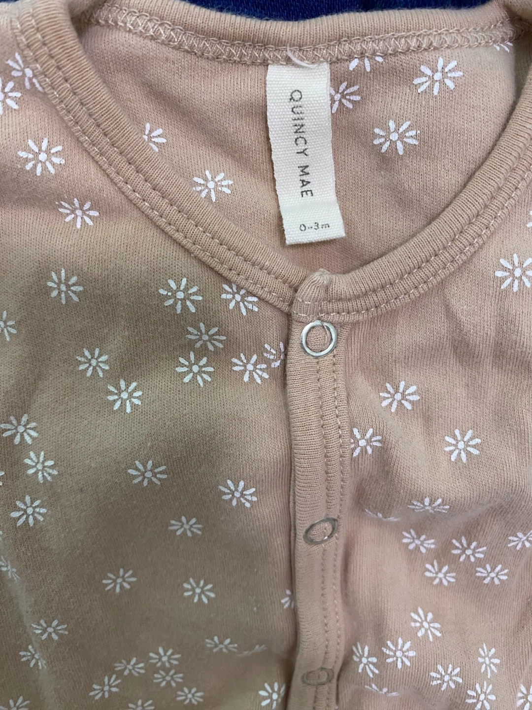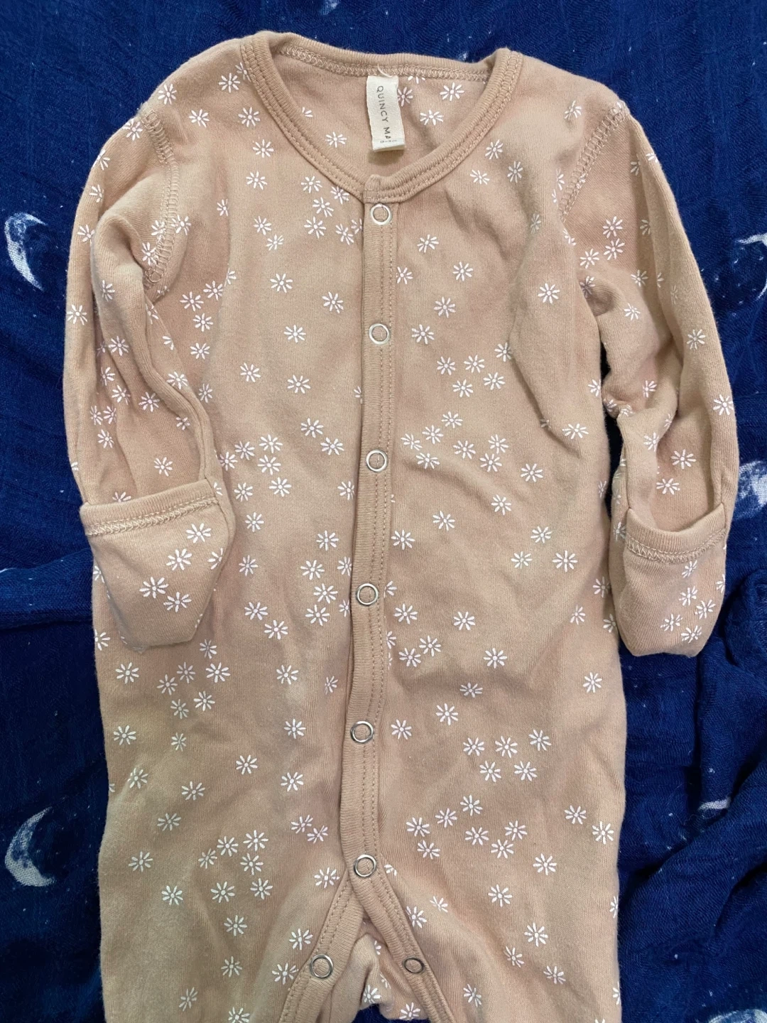 クインシーメイのベビー服ロンパースです。 アメリカの親戚からいただき数回着用しました。 袖が指先を被せられるミトンにもなります。 GOTS (オーガニックテキスタイル世界基準)認証オーガニックです。 有害な添加物を含まず、洗うほど柔らかくなり、着心地が良く、経年変化が味わいとなるような上質なピュアコットンを使用しています。 ・ブランド:クインシーメイ ・サイズ:0-3m ・色:ベージュに白い花柄 ・状態:使用感少なめ 中古品であることをご了承ください。