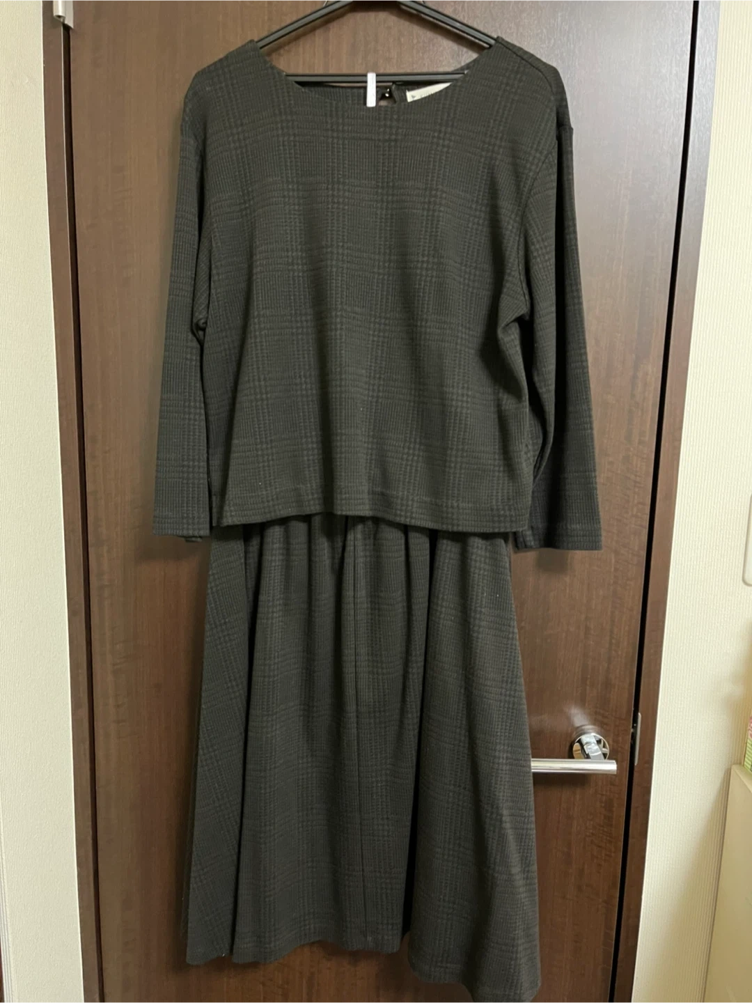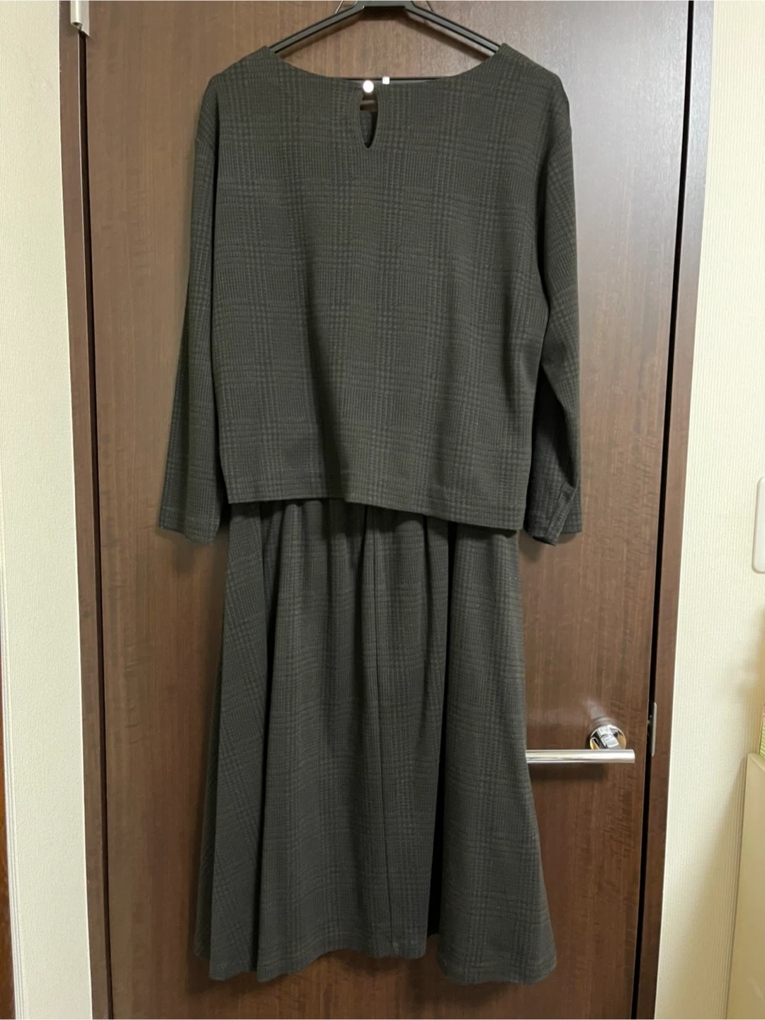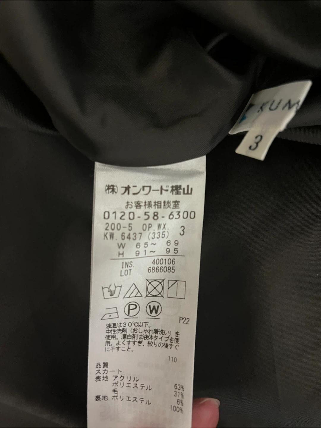 クミキョクのセットアップです 【情報】 ブランド:クミキョク サイズ:3 色:茶系のチェック 素材:スカート 表地 アクリル63%、ポリエステル31%、毛6%、裏地 ポリエステル100% トップス 着丈 約53cm スカート 着丈 約62cm スカートは後ろゴム(ポケット2つ) 1枚目と2枚目の写真は、全体像が わかるように、ハンガーを紐で繋いでます。 #組曲 #クミキョク #セットアップ