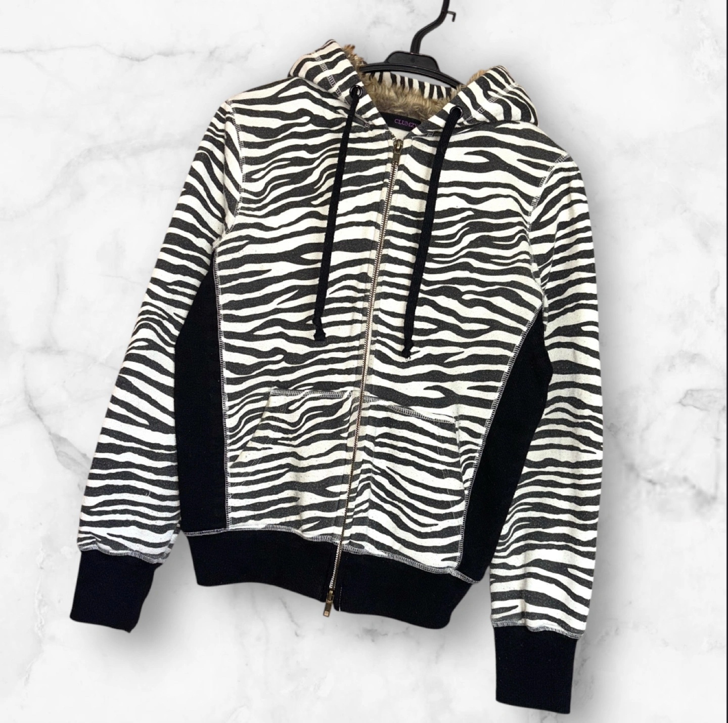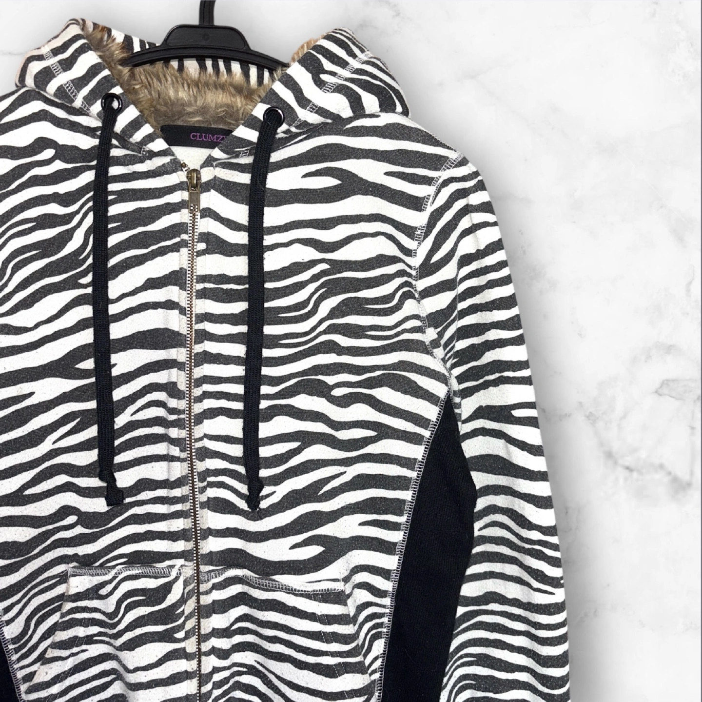 CLUMZY パーカー フードファー アウター ☆レディース ☆柄・デザイン…ゼブラ柄 ☆フードファーで暖かい ☆サイズ…F 使用による汚れや毛玉、使用感あります。 中古になりますので、ご理解のうえご購入ください! 【ユニークなデザイン】 このパーカーはゼブラ柄のデザインが特徴で、個性的なスタイルを演出します。 【実用的な機能】 フロントジッパーとサイドポケットが付いており、使い勝手が良いです。 - デザイン: ゼブラ柄 - フード: 付き - ジッパー: フロントジッパー - 色: 白と黒 - 袖口: リブ付き - ポケット: サイドポケット付き 他サイトでも出品中です。 他で売れた場合、急に削除しますので、ご了承ください