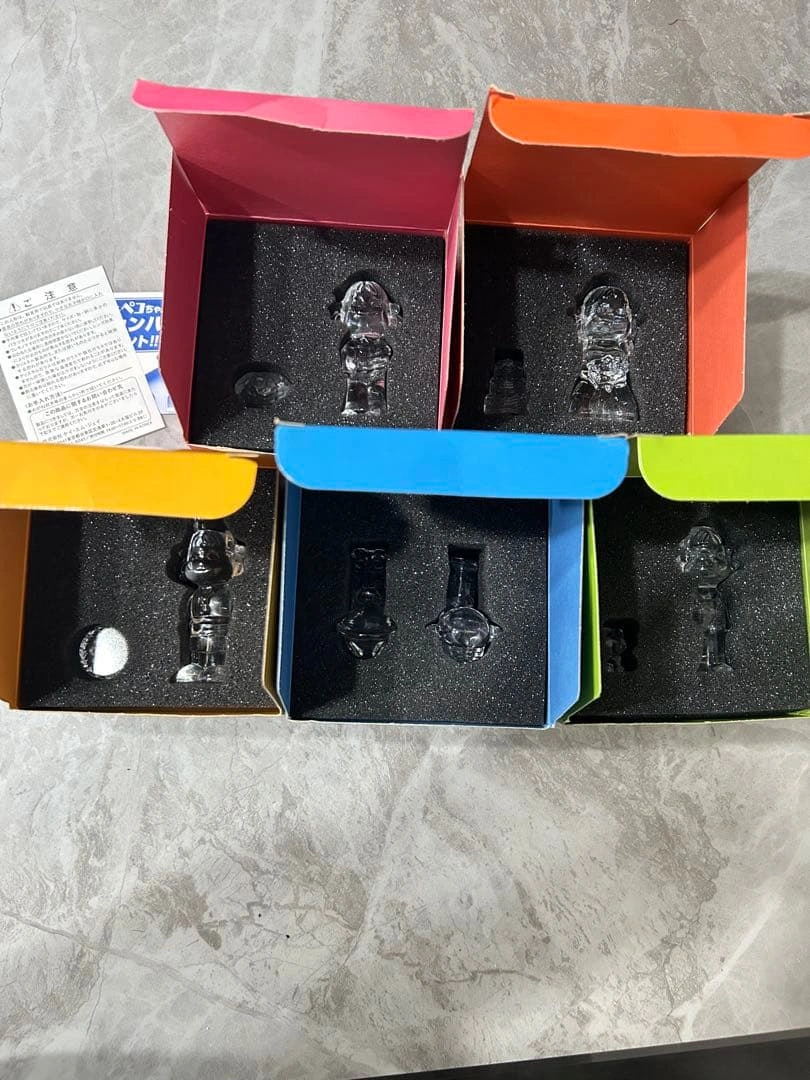 5体のPekoフィギュアセットです。透明プラスチック製、各種デザイン。 箱に傷みはありますが、箱から出して保管はしていなかったので物自体は美品です。 - セッ ト内容: 5体のフィギュア - デザイン: Peko & Present, Peko & Wedding Cake, Peko & Poko, Peko & Dog, Peko & Cake - 素材: 透明プラスチック - パッケージ色: ピンク, オレンジ, 青, 緑, 黄 ご覧いただきありがとうございます。